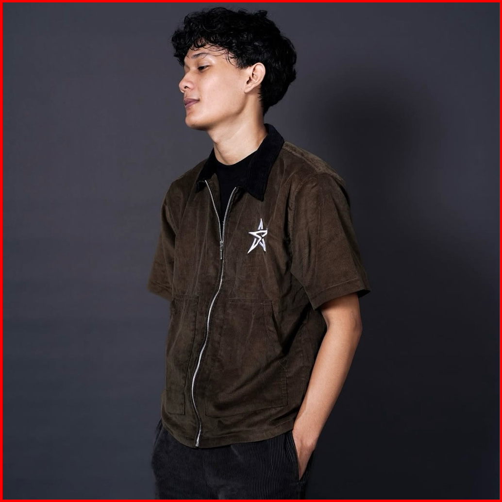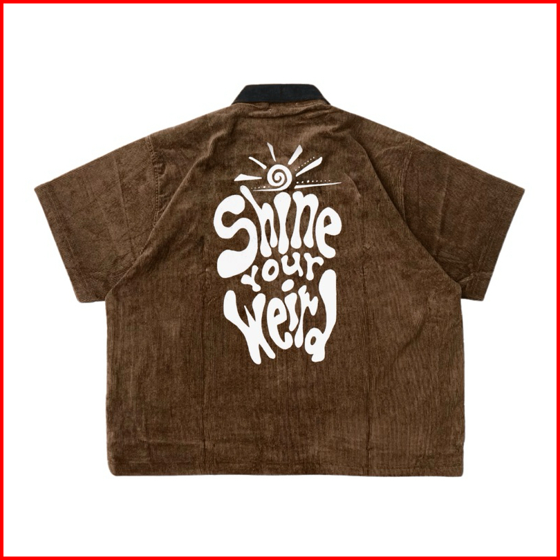 Sai - Dirty Work Shirt Brown Corduroy Zipper Boxy Shirt - Boxy Fit