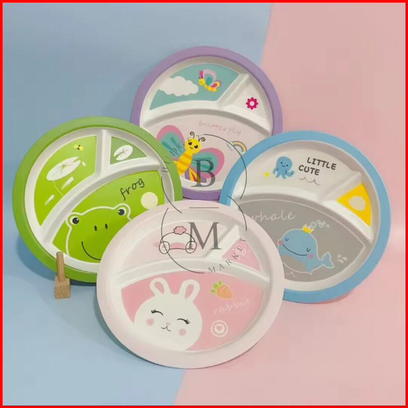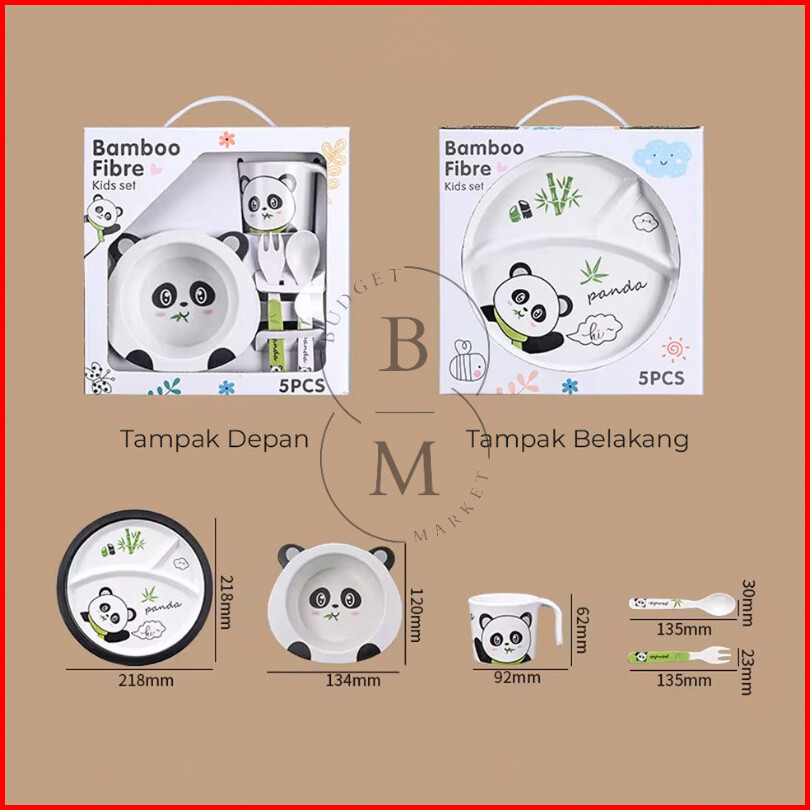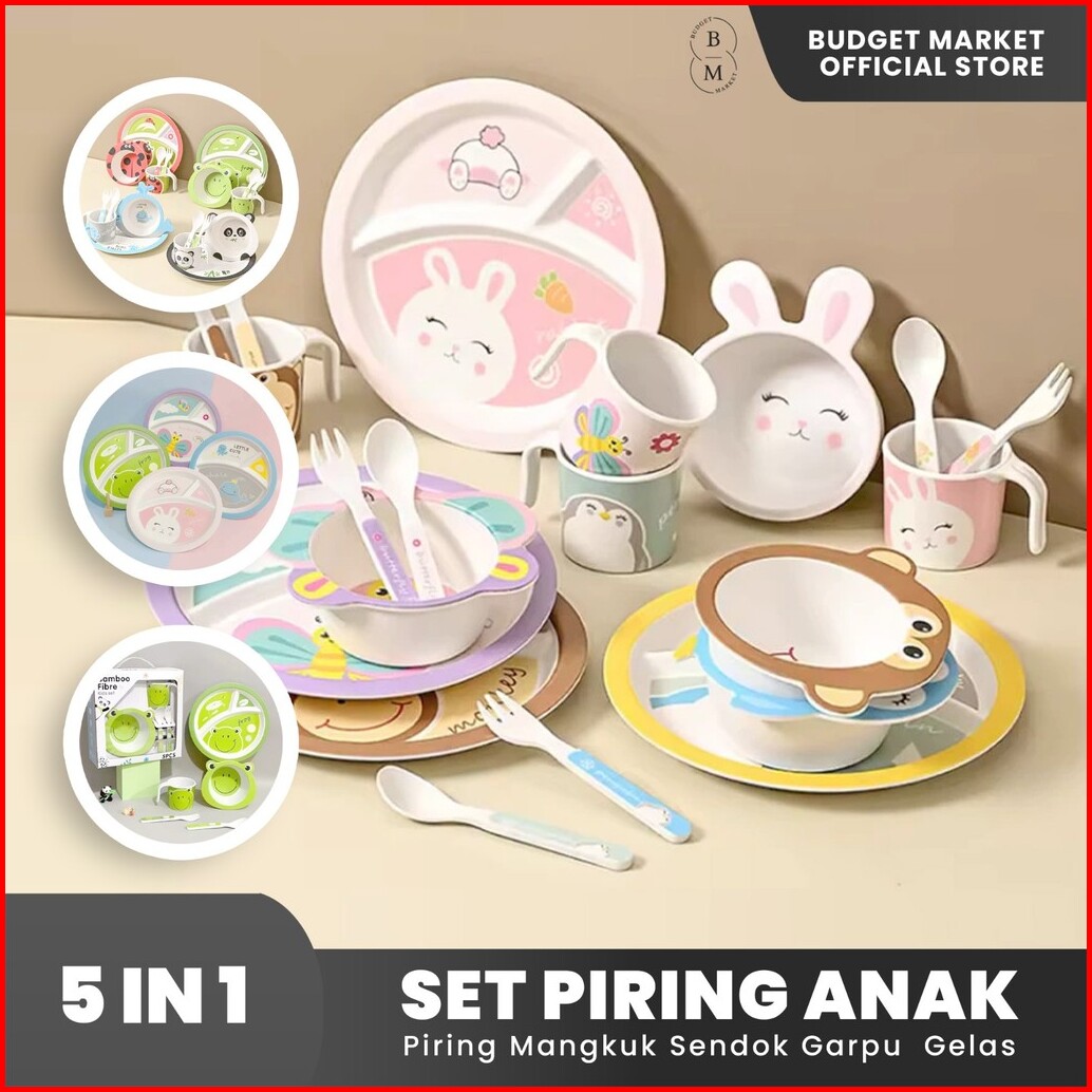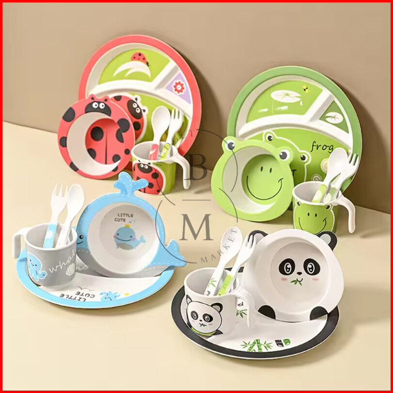 5 In 1 Bamboo Fiber Kids Feeding Set Baby Bowl Set Alat Piring Makan Anak Mangkok Anak Bayi Motif Karakter Lucu Box Set