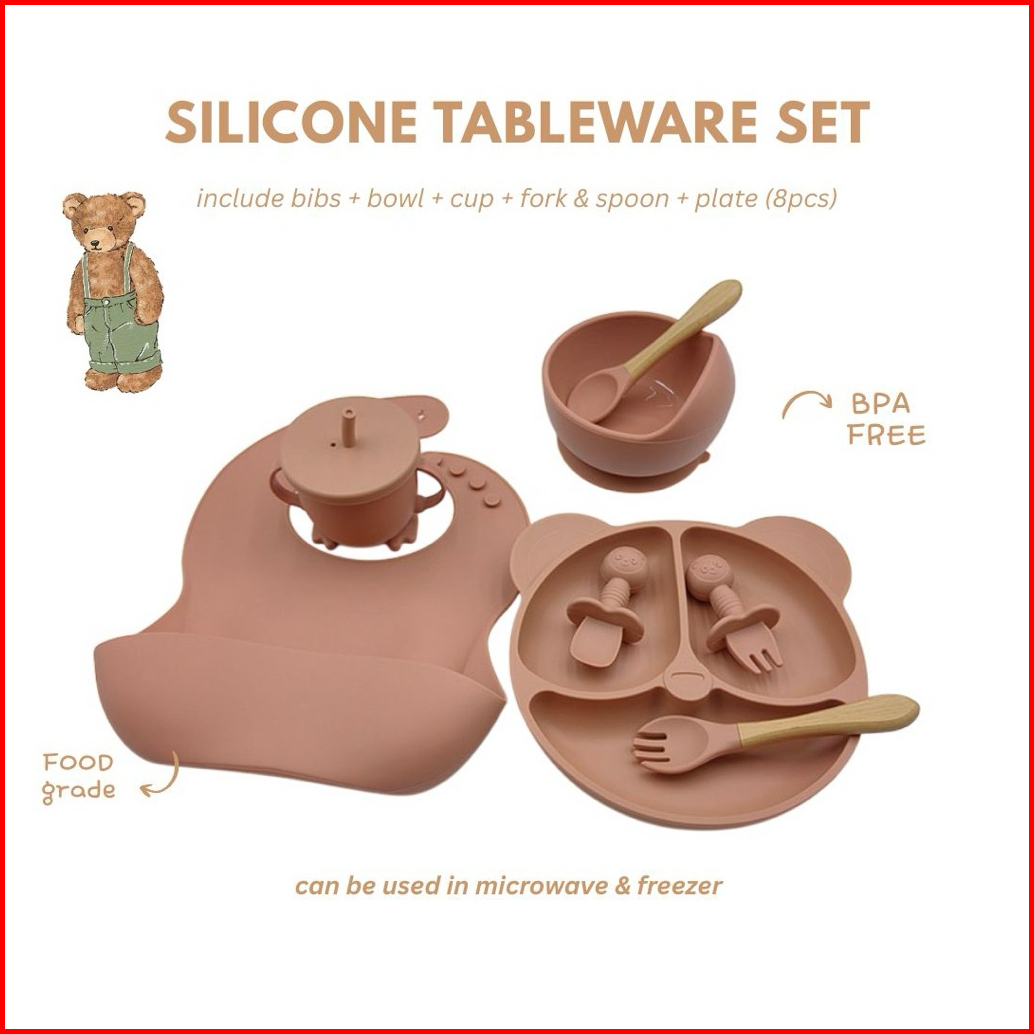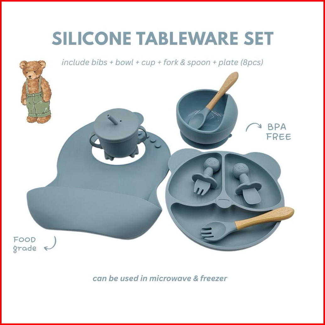 Babychan - Silicon Tableware Set Tempat Makan Bayi Silicon Set Mangkuk Stainless Bayi