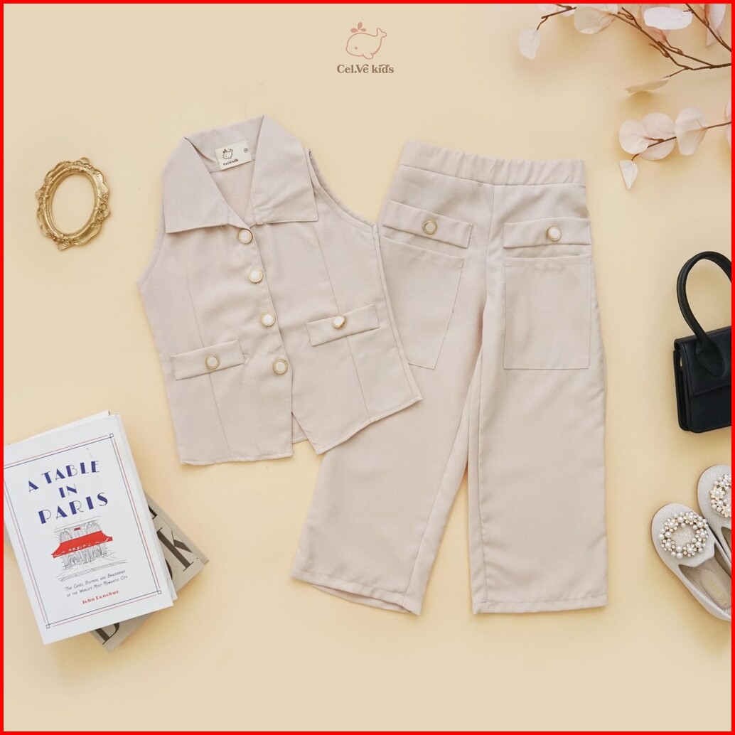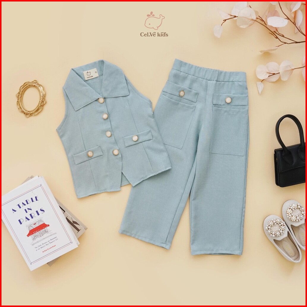 Celvekids - Stelan Bernice Set Baju Celana Anak Perempuan Korean Style Bahan Linen Premium Usia 1-8th
