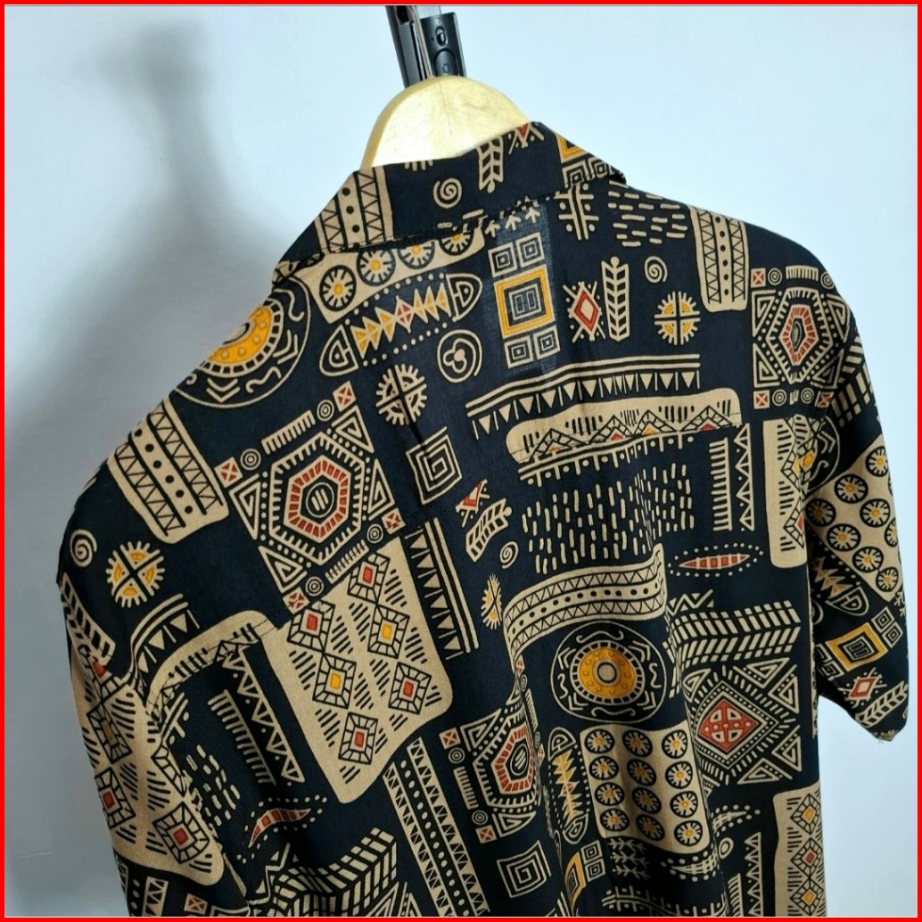 Must Kemeja Pantai Pria Wanita Abstrak Vintage Casual Lengan Pendek - Motif Batik Hawai Shirt