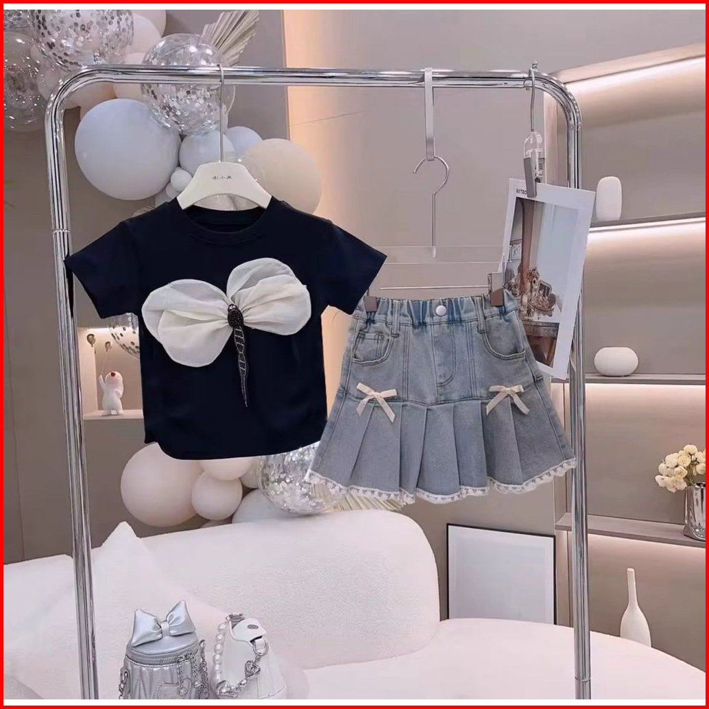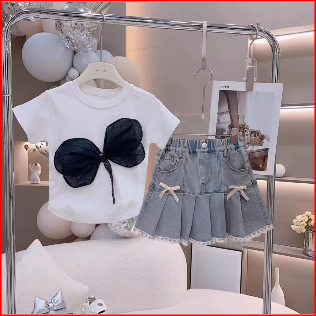 Setelan Anak Perempuan Lengan Pendek Setelan Rok Denim Anak Cewek Terbaru Dan Terlaris