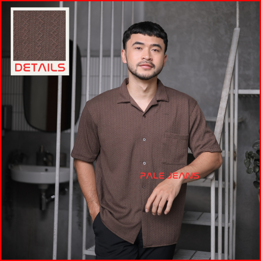 Cuban Bowling Shirt Knit Motif Pria Kemeja Lengan Pendek Premium Bahan Knit Shirt Knit Hawai Bermotif.