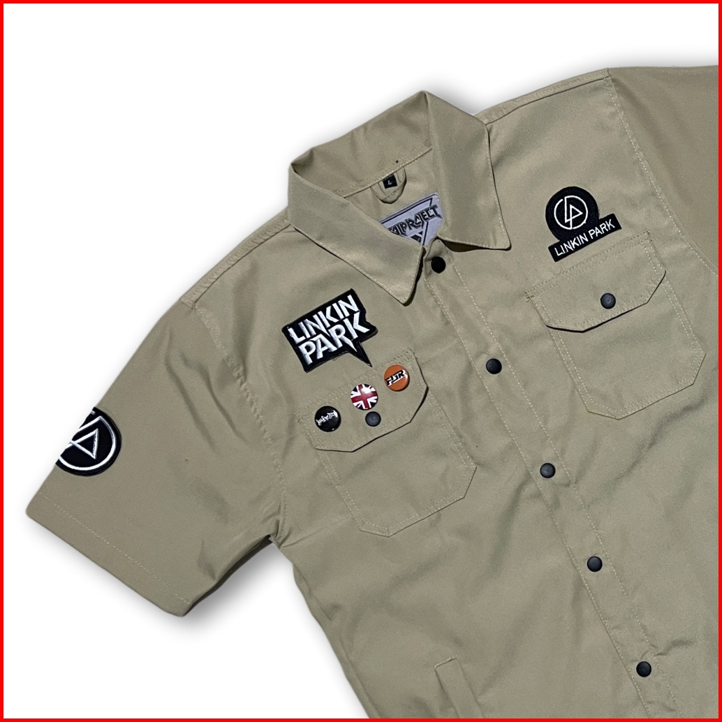 Workshirt Kemeja Kerja Casual Kolaborasi Patch Emblem Bordir Band Premium - Lp Series