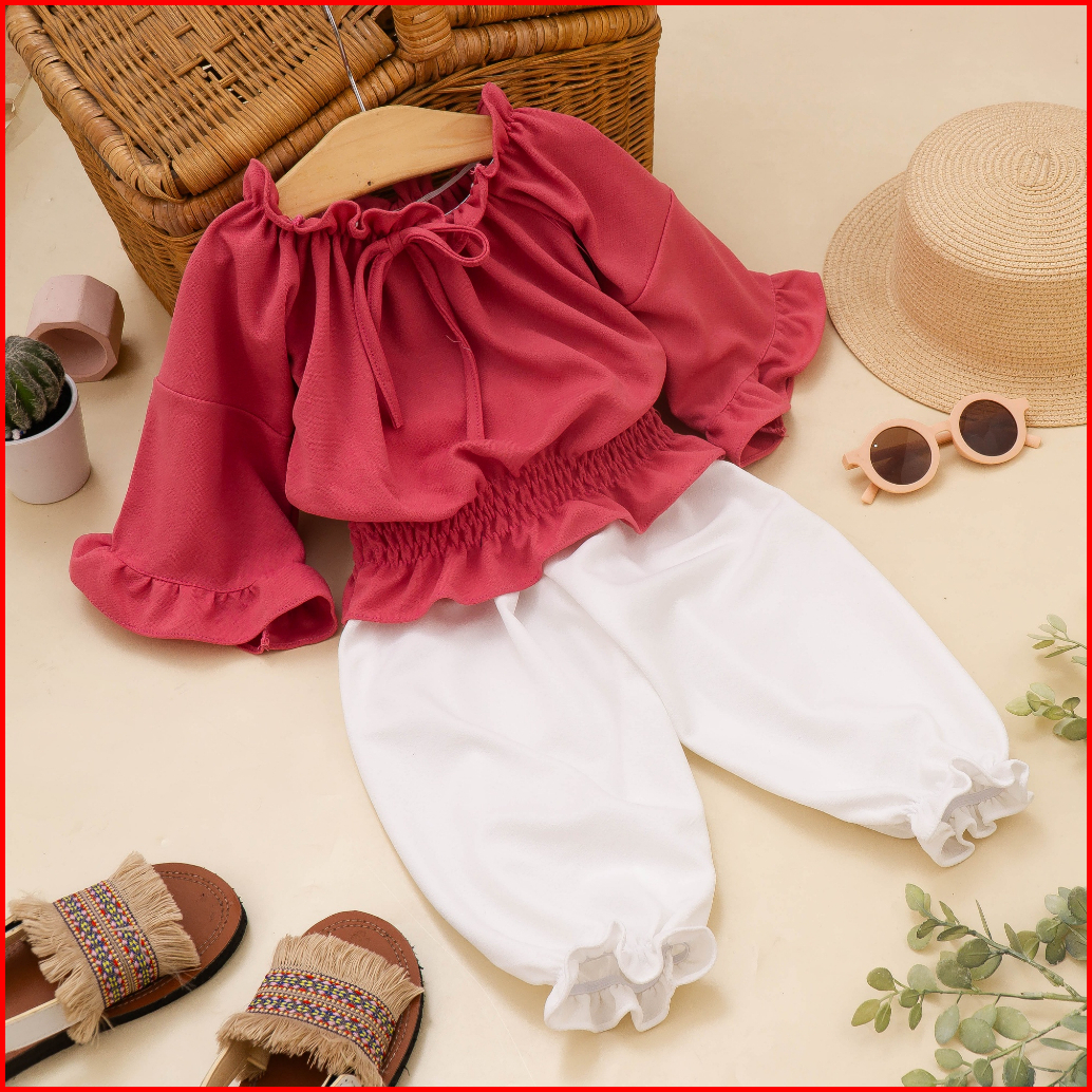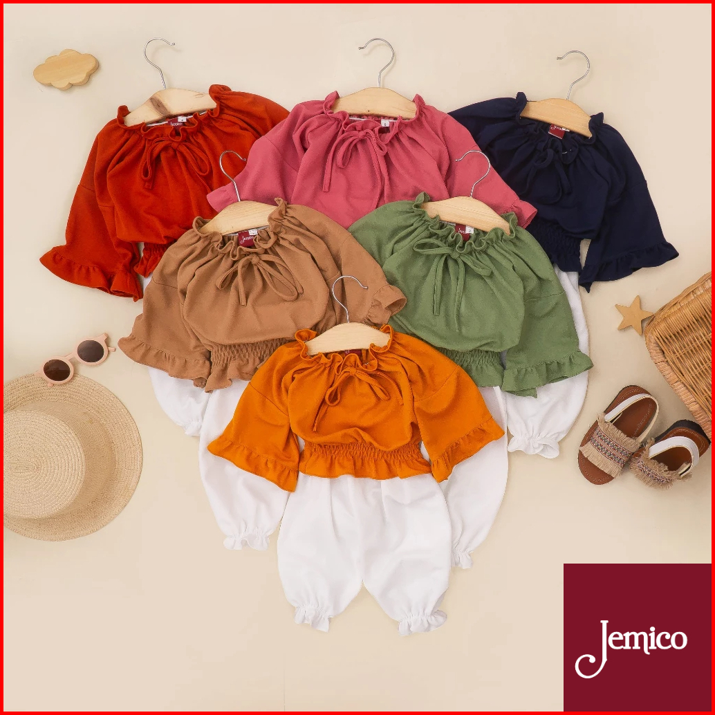 Jemico Setelan Anak Perempuan Celana Panjang Tangan Panjang Terompet Jersey