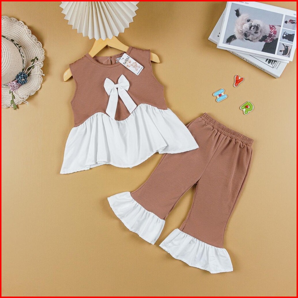 Alesha - Setelan Anak Restia Model Pita Oneset Anak Atasan Lengan Pendek Dan Celana Model Ruffle