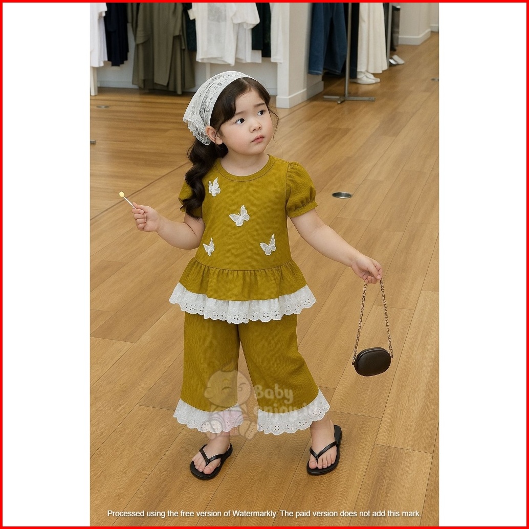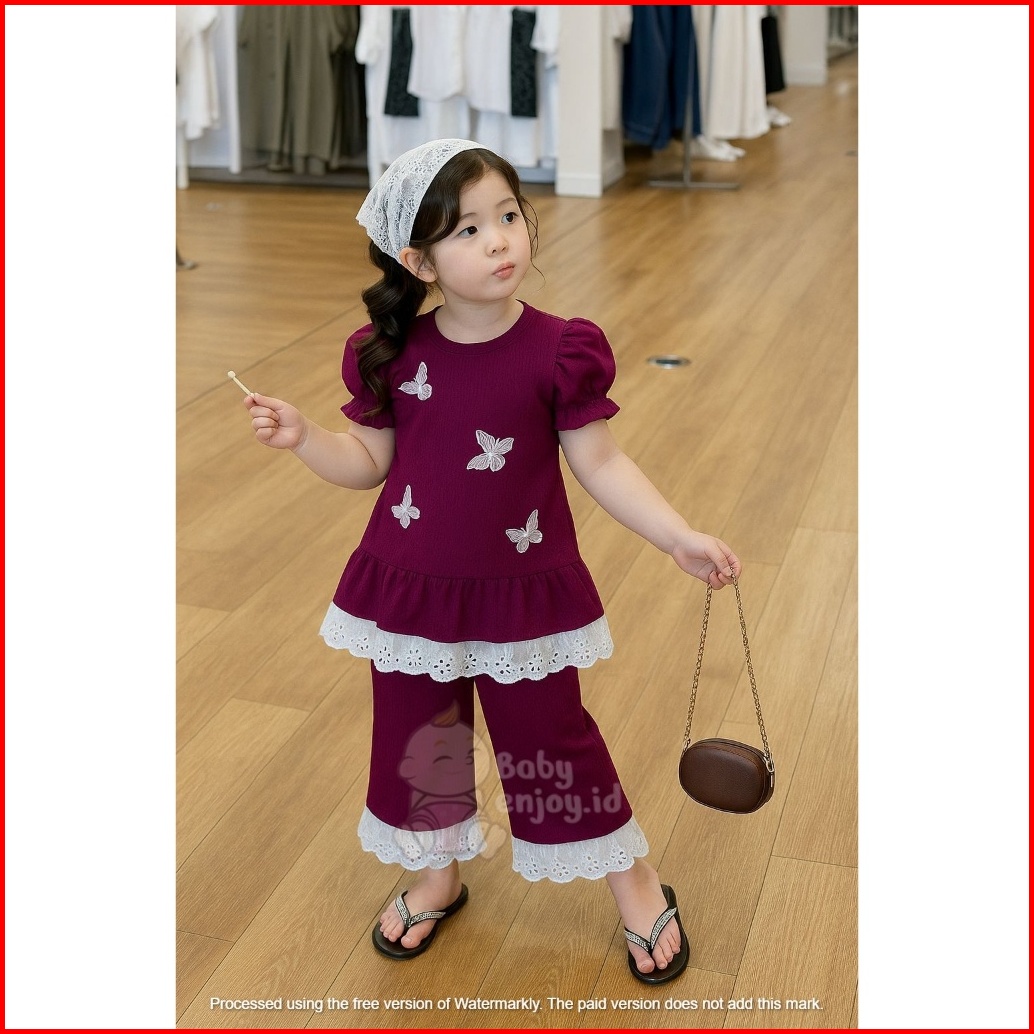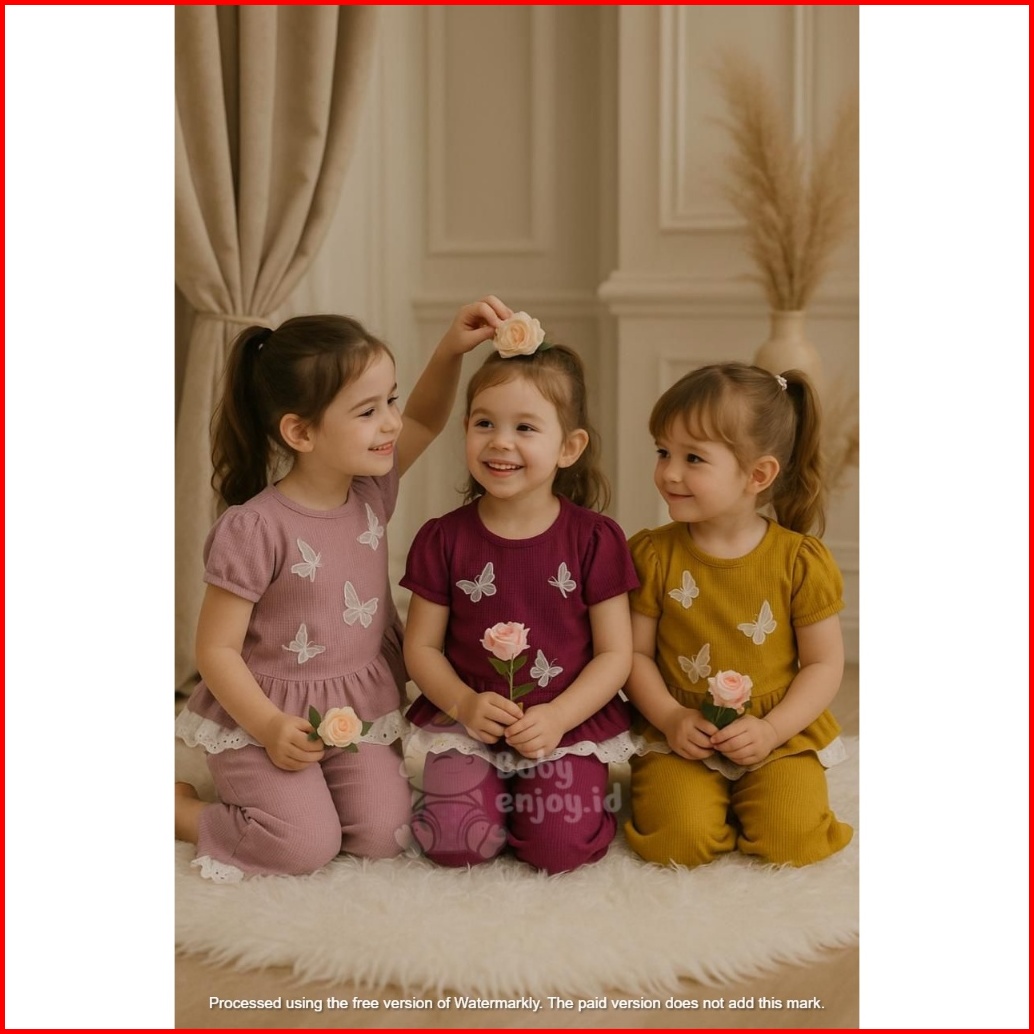 Setelan Anak Motif Kupu-kupu Bahan Knit Wafel Usia 1sampai 10 Tahun Ada 3 Pilihan Warna
