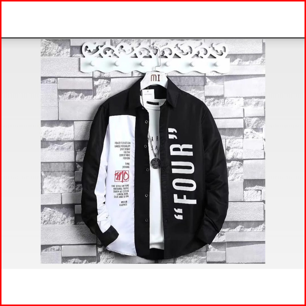 Baju Atasan Kemeja Hem Pria Lengan Pendek Motif Four Terbaru