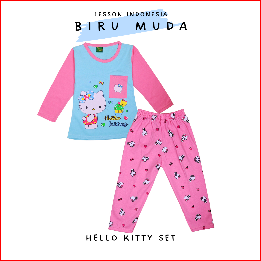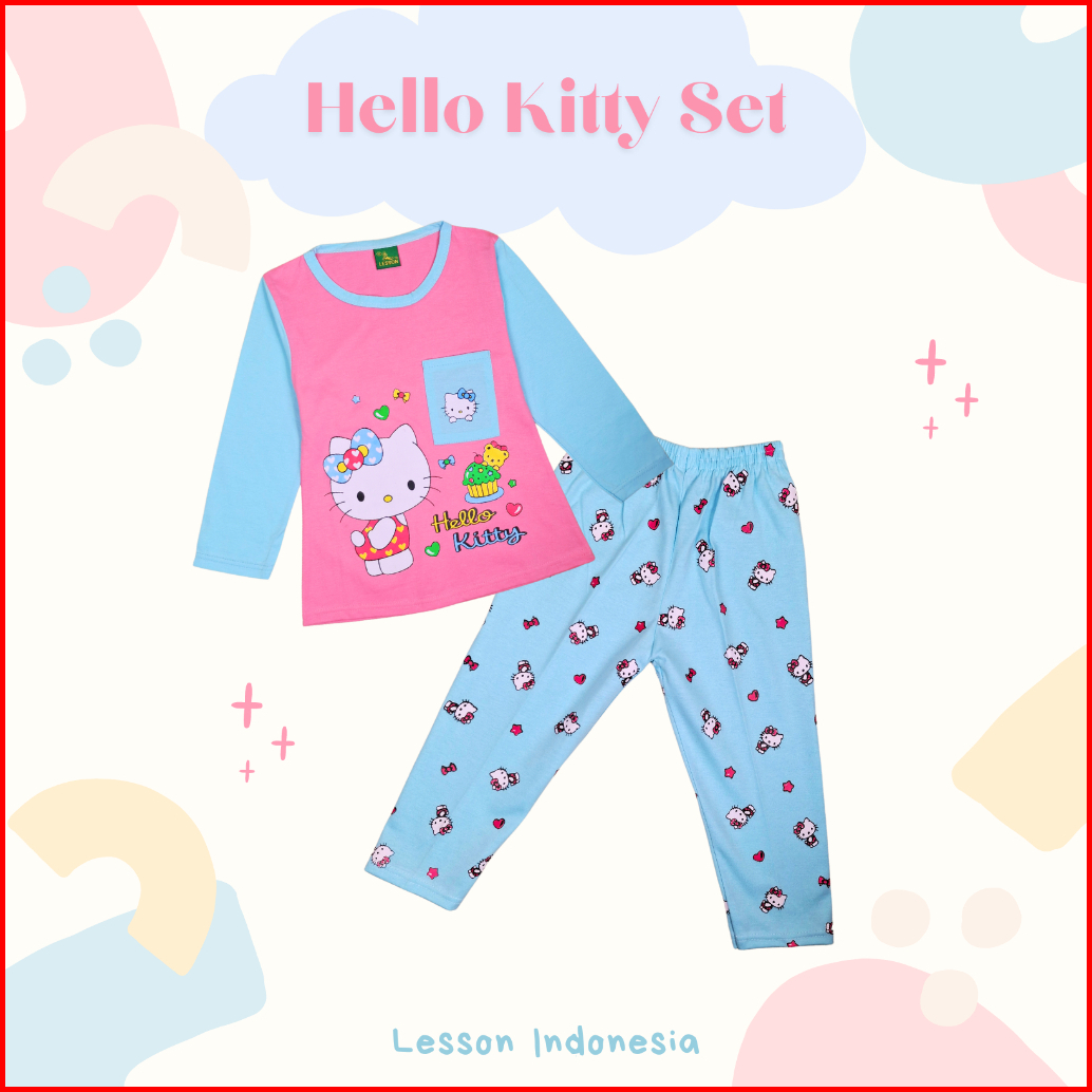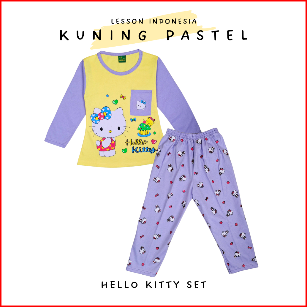 Setelan Anak Perempuan Baju Tidur Motif Hello Kitty Lesson