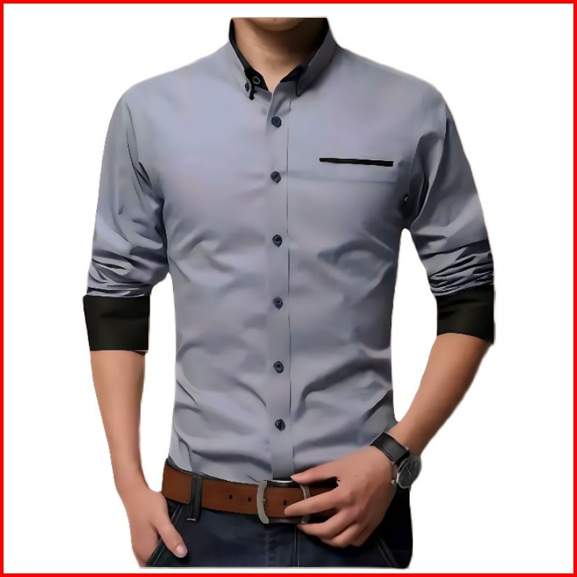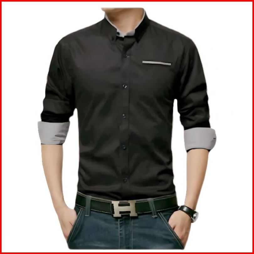 Kemeja Pria Polos Kombinasi Slimfit Casual Lengan Panjang Putih Hitam Abu Muda Nevy Katun Adem Nyaman