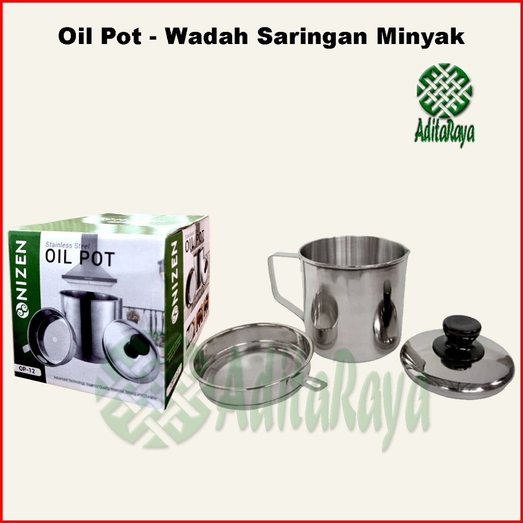 Oil Pot Stainless Steel 1.3 Liter Wadah Saringan Minyak Jelantah Anti Tumpah