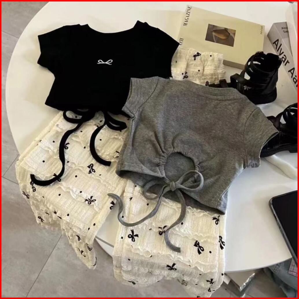 Setelan Anak Perempuan Baju Ootd Kaos Dan Celana Anak Motif Pita Harper