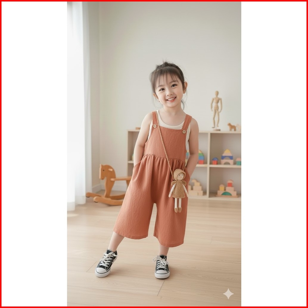 Baju Anak Perempuan Cewek Jumpsuit Overall Casual Simple Simpel Linen Keren Sederhana Fashion Kids Girls Modis Lucu Cute