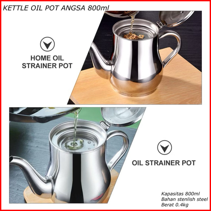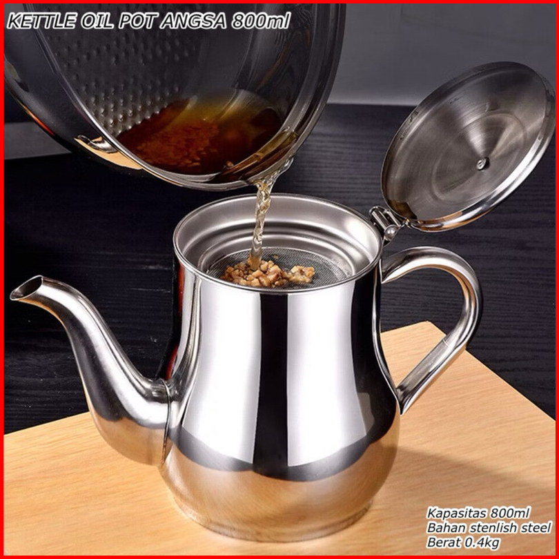 Fm Kettle Oil Pot Angsa 800ml Tempat Minyak Saringan Stainless Wadah Saringan Minyak Oil Pot Angsa