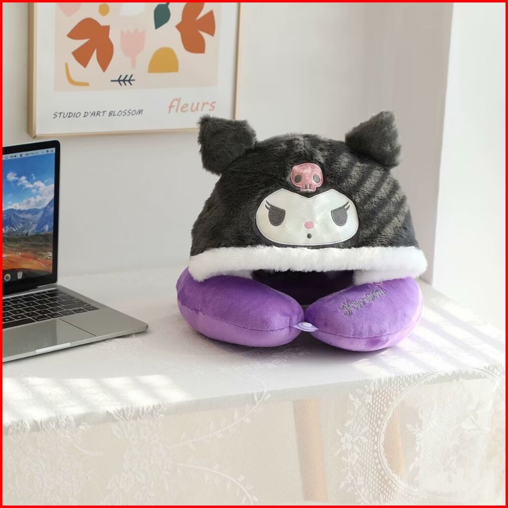 Bantal Leher Hoodie Karakter Lucu Sanrio Hello Kitty U-shaped Pillow Anime My Melody Topi Terbaru