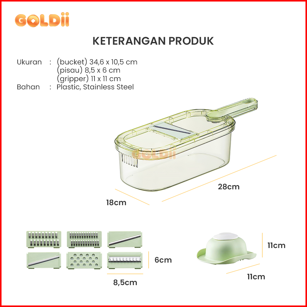 Goldii - Parutan Serbaguna Pengiris Sayur Buah Stainless Premium Wadah Plastik 8 In 1