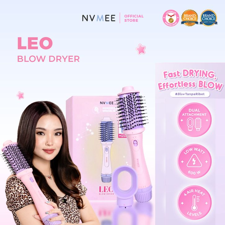 NVMEE - LEO Blow Dryer Hot Air 2in1 Low Watt - Sisir Blow Pengering Rambut - Sisir Catok NEW