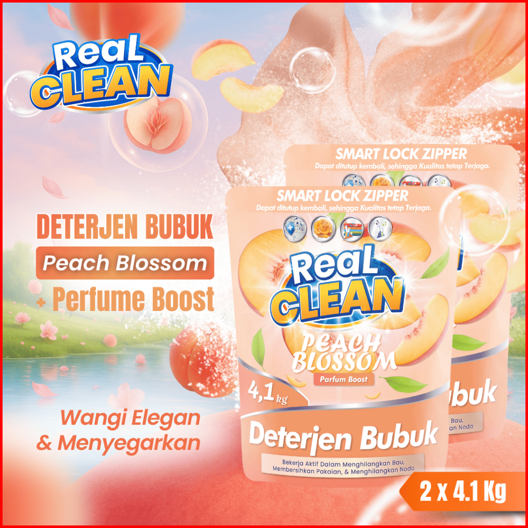 Bundle Real Clean Deterjen Bubuk Peach Blossom Perfume Boost 4 1 Kg - Pembasmi Ampuh Noda Pakaian