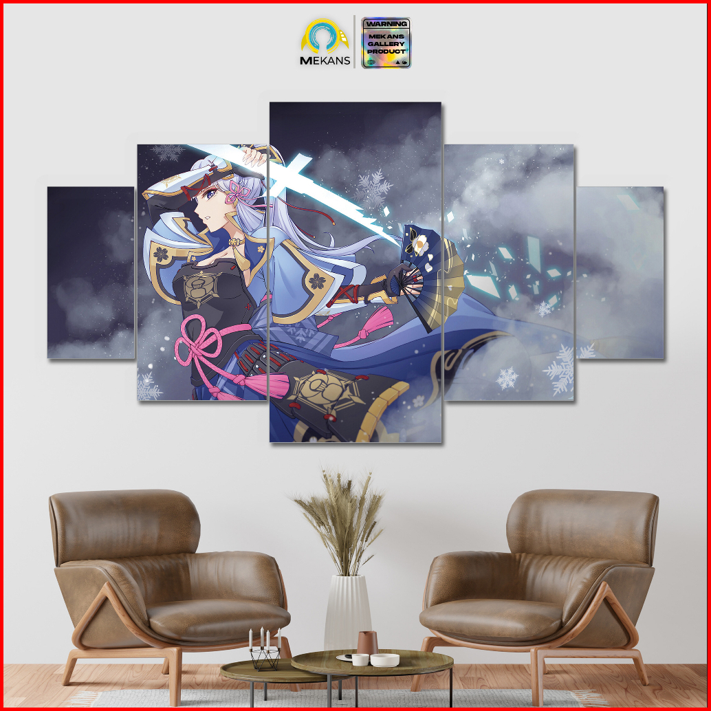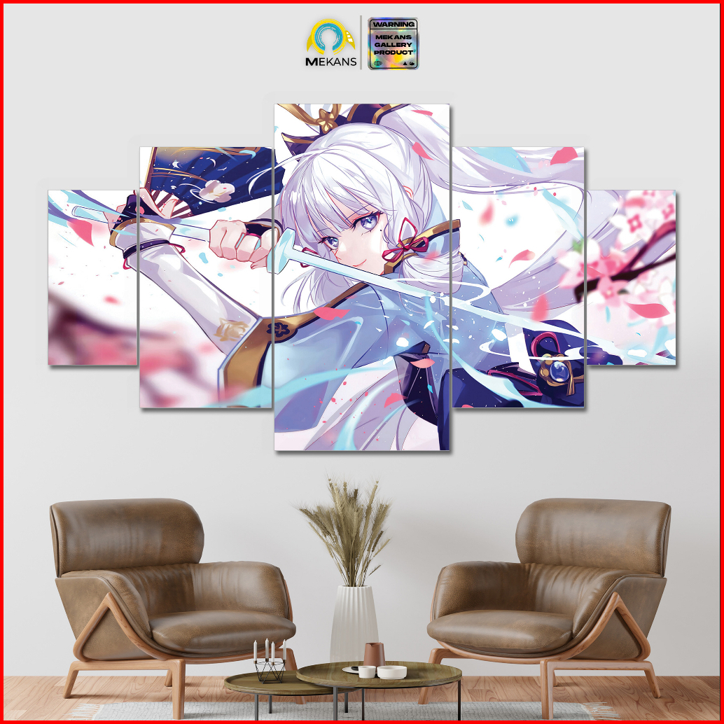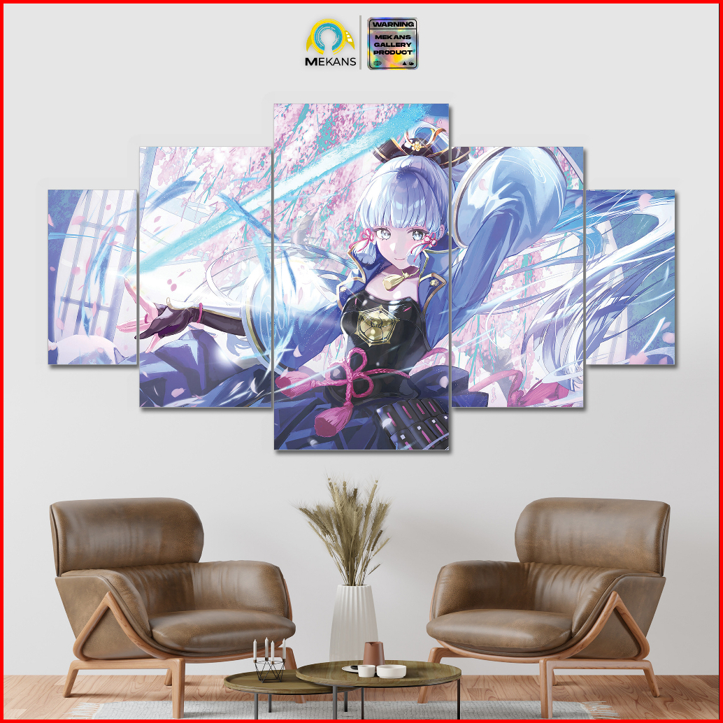Mekans 1 Set Pajangan Hiasan Dinding Genshin Impact Ayaka Poster Kayu Wall Decor 5pcs