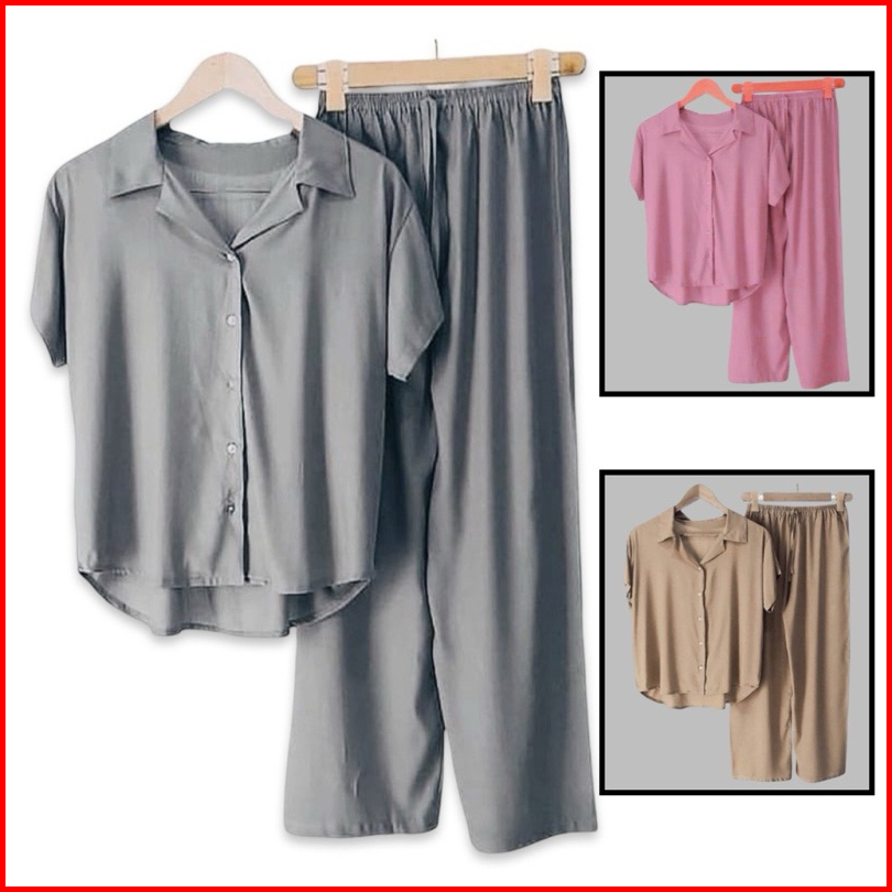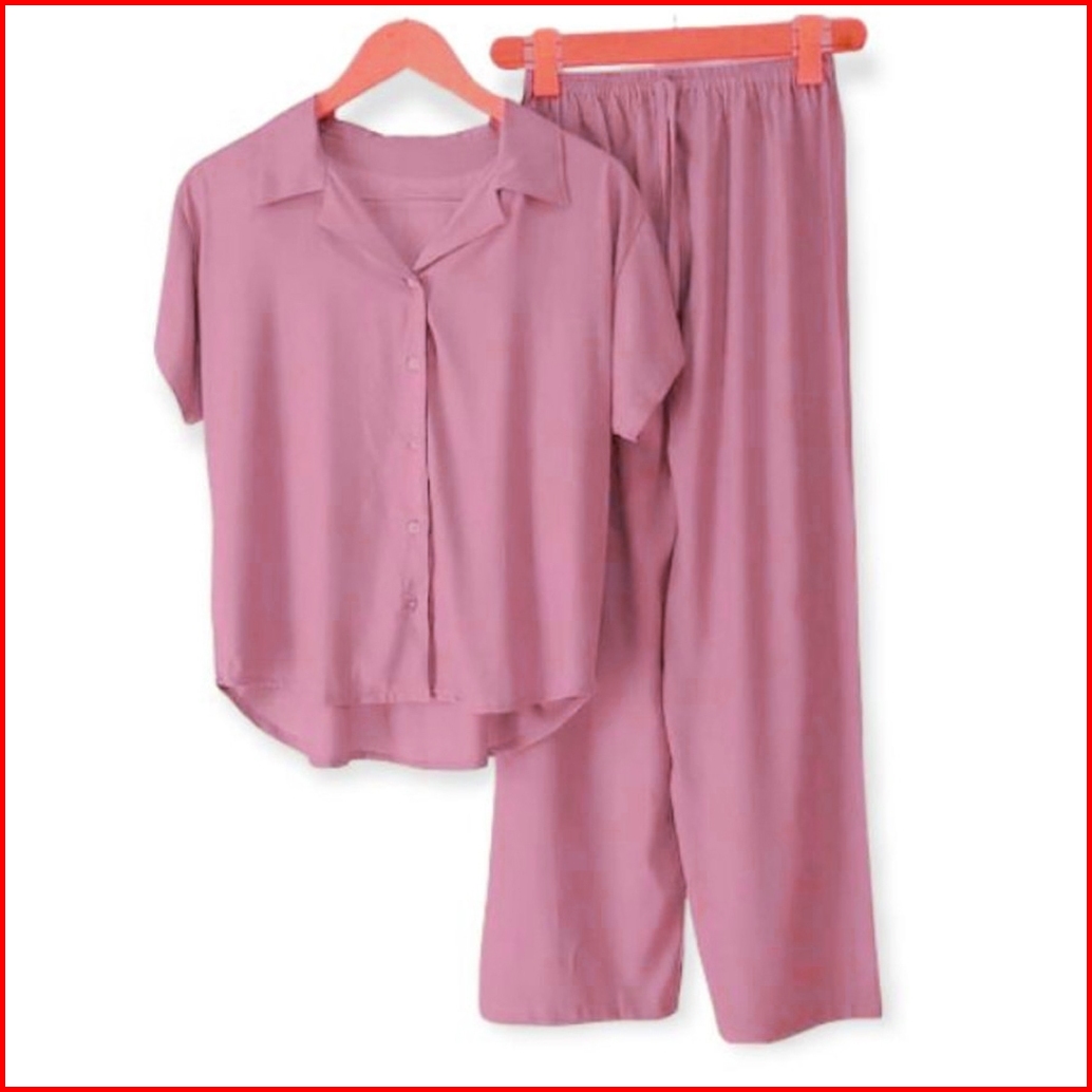 Piyama Baju Tidur Wanita Dewasa Setelan Kemeja Wanita Polos