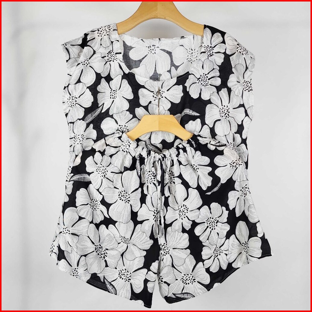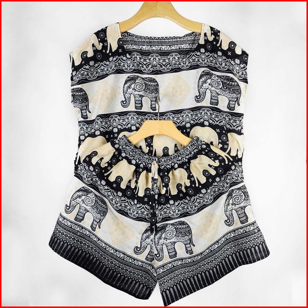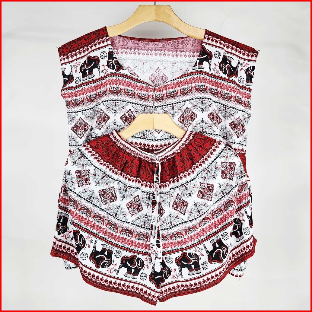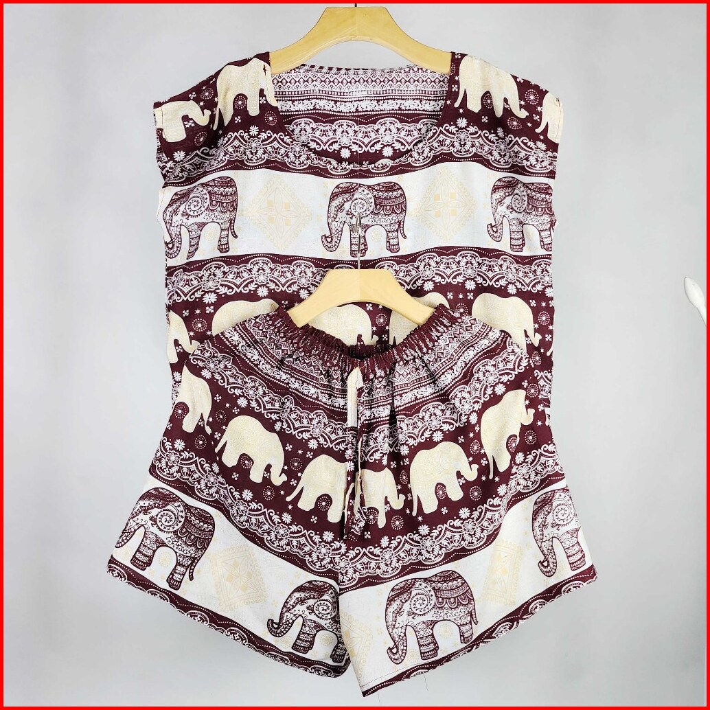 Setelan Motif Gajah Baju Tidur Babydoll Pendek Wanita Jumbo