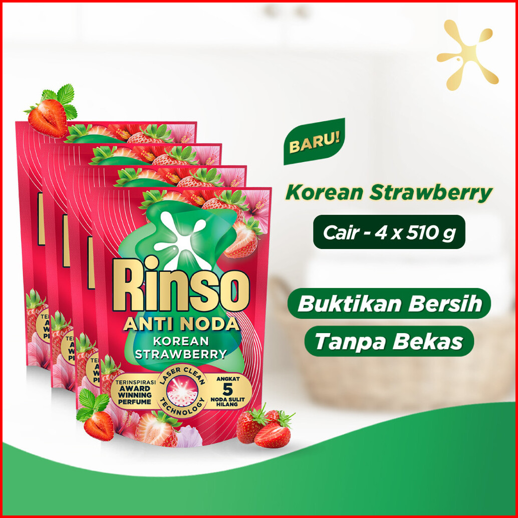 Rinso Sensifresh Detergent Deterjen Wangi Segar 48 Jam Korean Strawberry 510 Ml X4