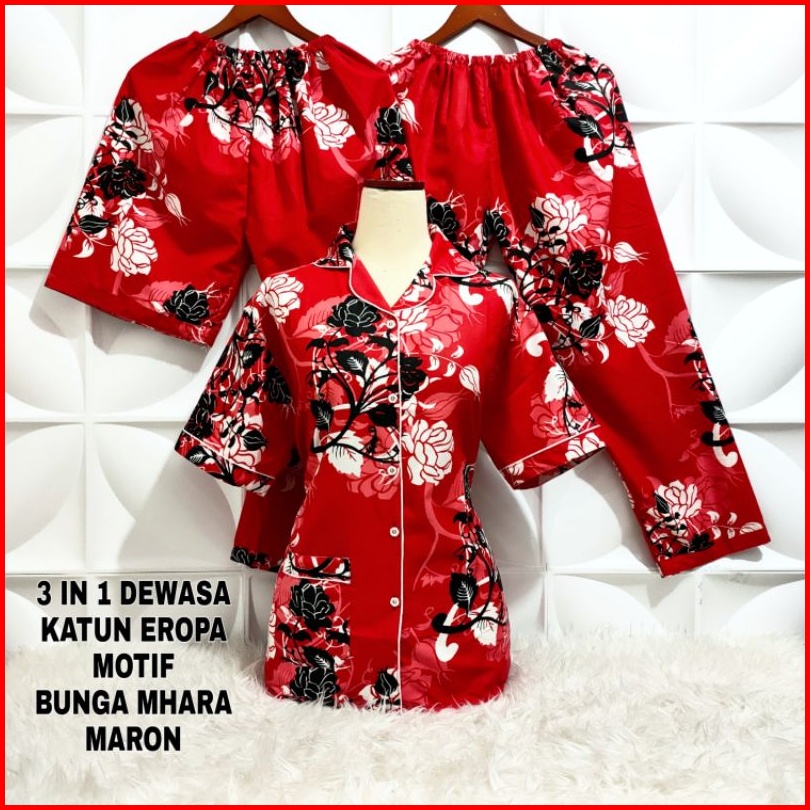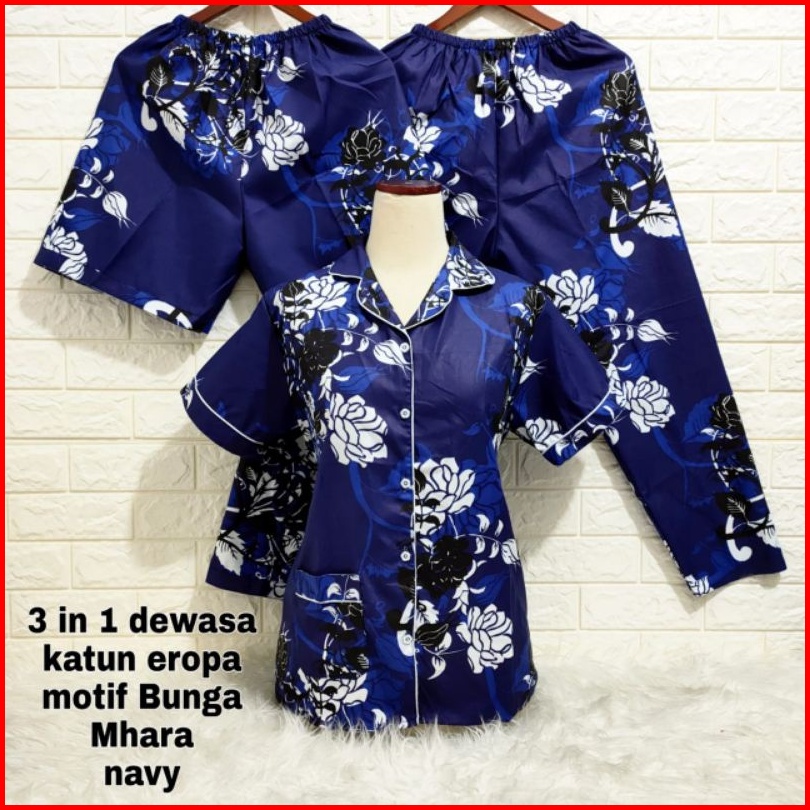 Baju Tidur Piyama 3 In 1 Dewasa Size M - Xxl Motif Bunga