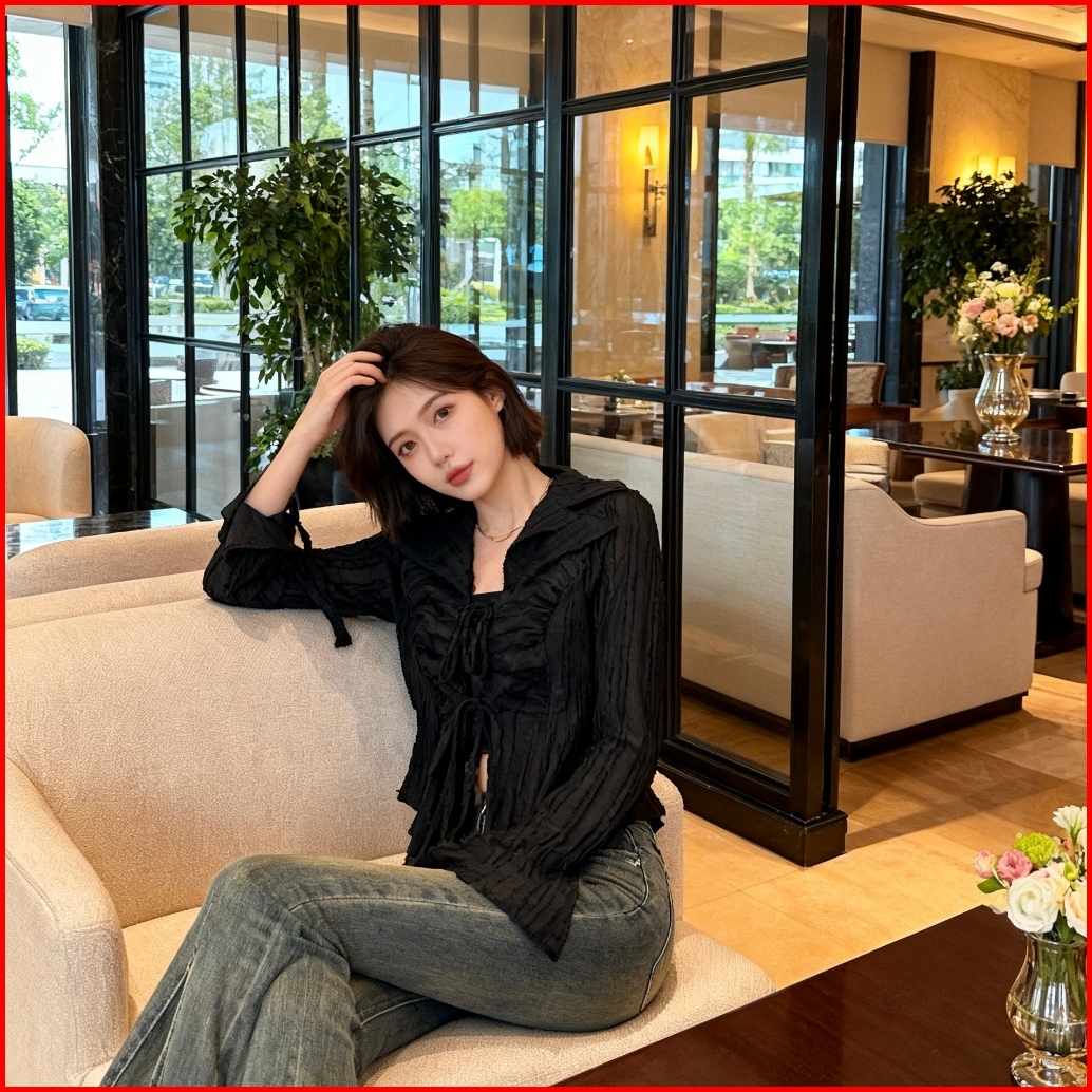 Atasan V Neck Wanita Slim Fitting Korea Style M686