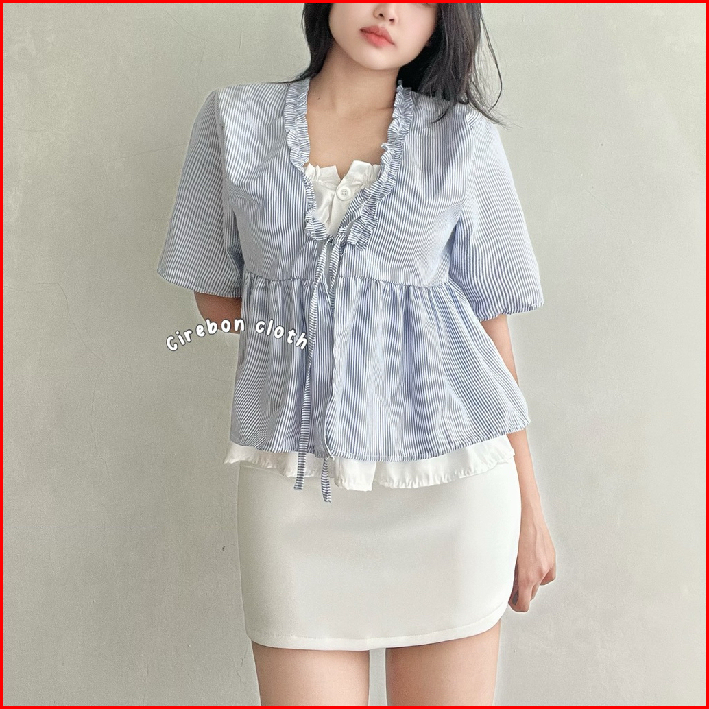 Kiyana Cirebon Cloth - Kinara Stripe Blouse Korean Blouse Garis Garis Atasan Korea Lucu Atasan Wanita Lucu Atasan Wanita
