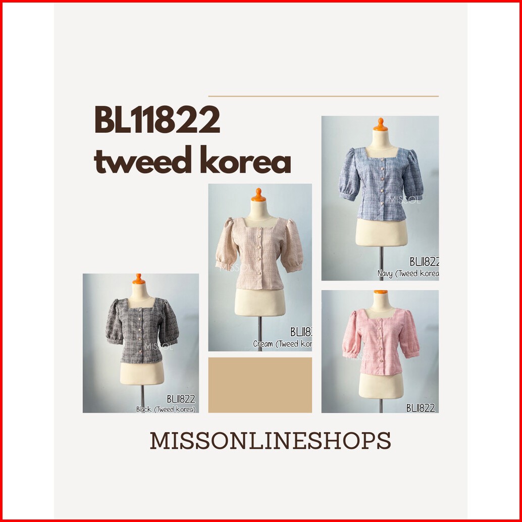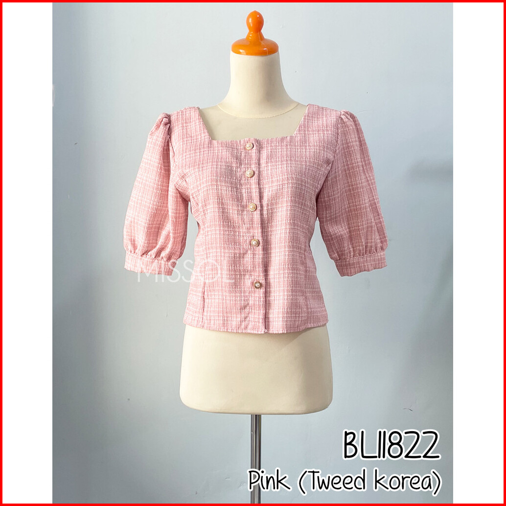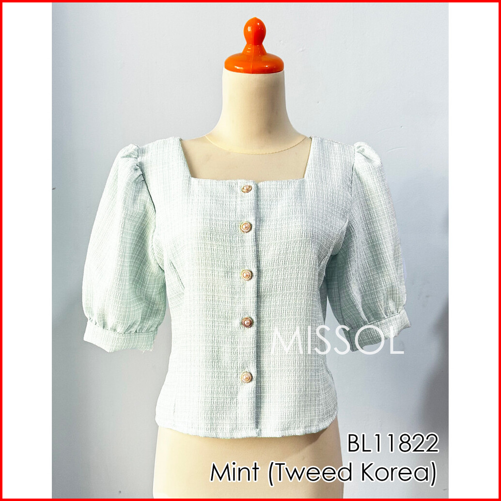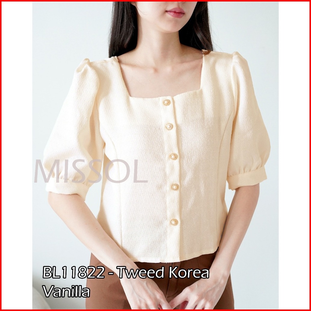Missol Bl11822 Size S M L Bahan Tweed Korea Leher Kotak Premium Unik Baju Korean Style 11822 Bestseller