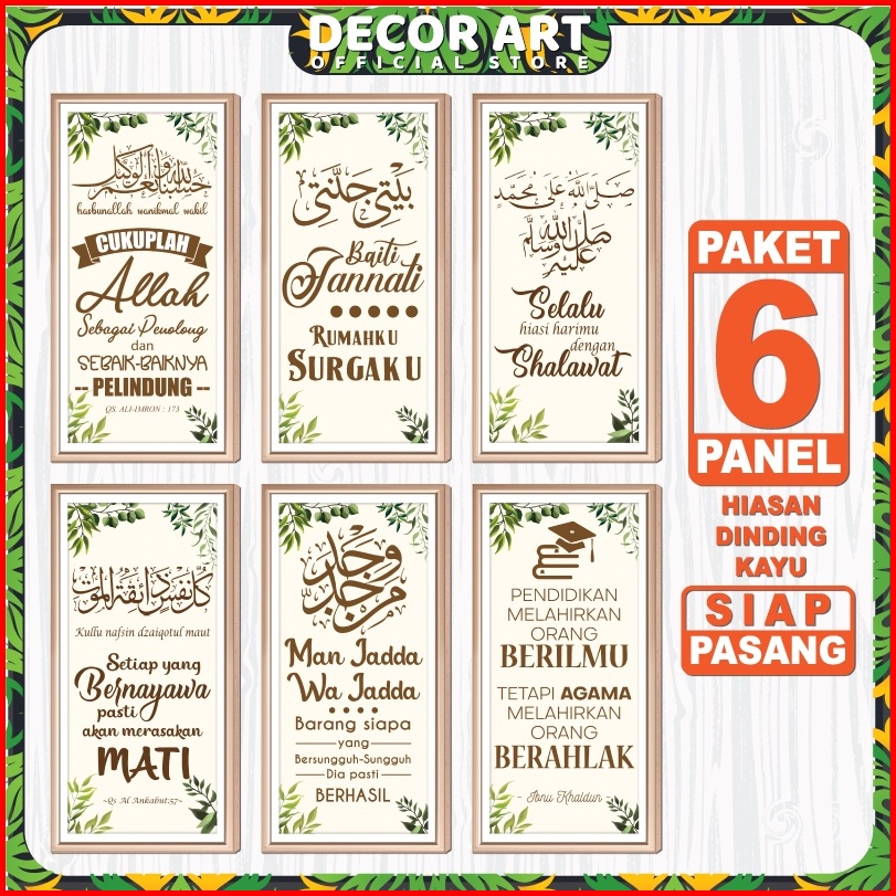 Decorart - Paket 6 Pcs 10x20 Cm Pajangan Hiasan Dinding Dekorasi Kamar Tema Motivasi Kata Mutiara Islami