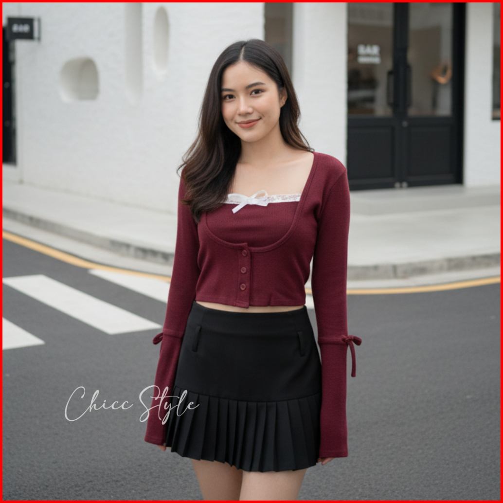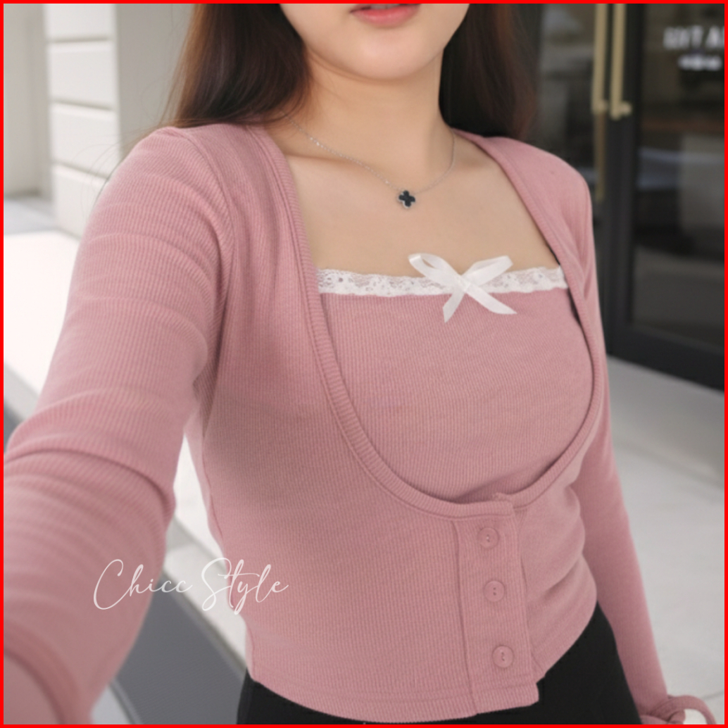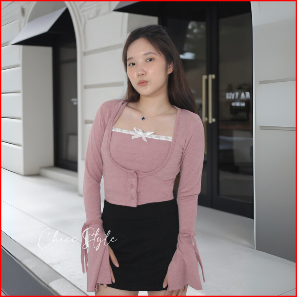Chicc Cacha Sweet Ribbon Flare Knit Cardigan Top Korea