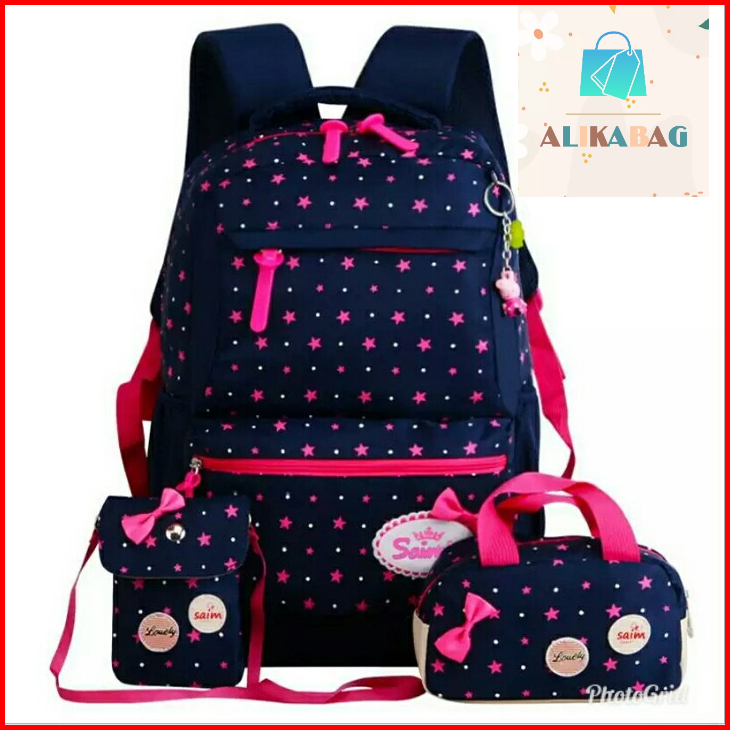 Alika Bag - Tas Ransel Sekolah Anak Perempuan Multifunsi 3 In 1 Bertabur Bintang
