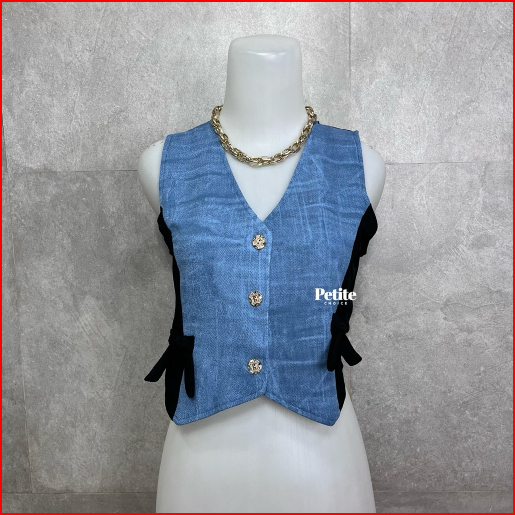 Petitechoice Luna Vest Top Crop Vest Atasan Wanita Tanktop Stretch Casual Korean Comfy Denim Button Vintage Houndstooth