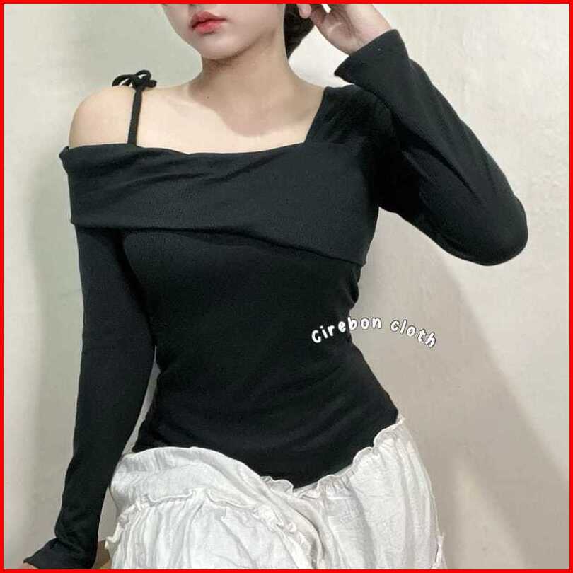 Sabrina Knit Top Atasan Wanita Lengan Panjang Pita Korean Top Long Sleeve