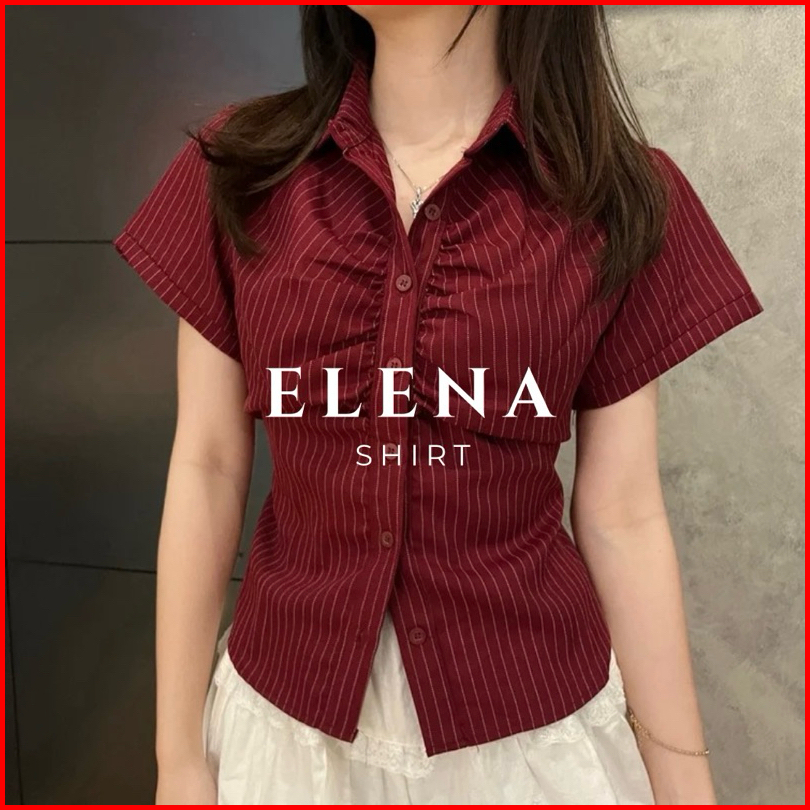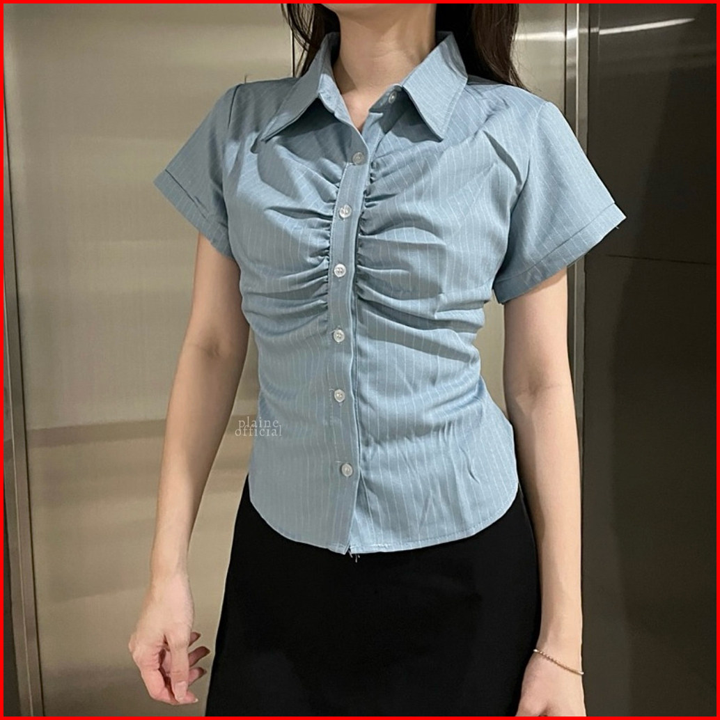 Plaine - Elena Shirt Korean Top - Atasan Formal Vest Wanita Atasan Fitted Classy Kemeja Lengan Pendek Fit Body