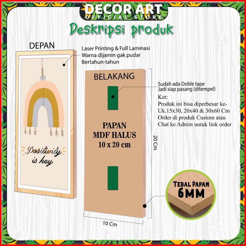 Decorart - Paket 6 Pcs 10x20 Cm Pajangan Hiasan Dinding Dekorasi Kamar Motif Scandinavian Boho