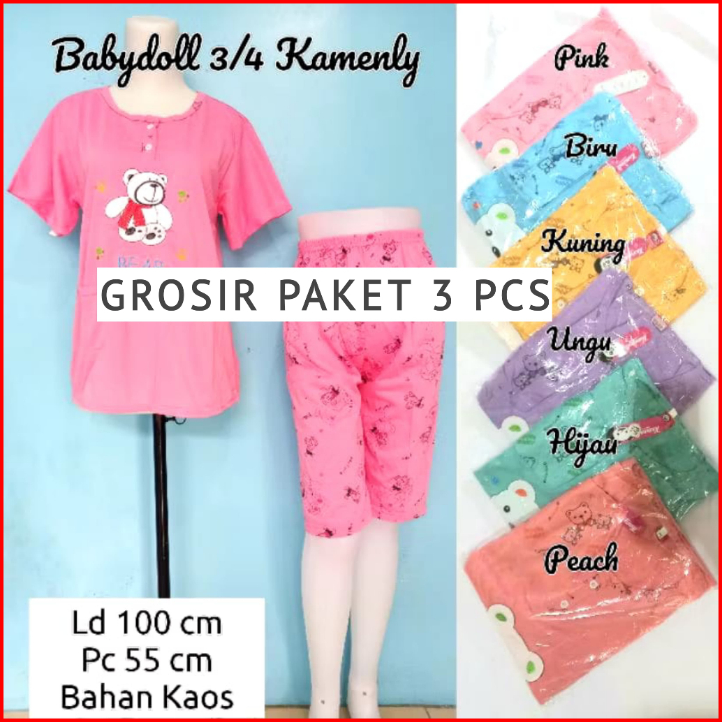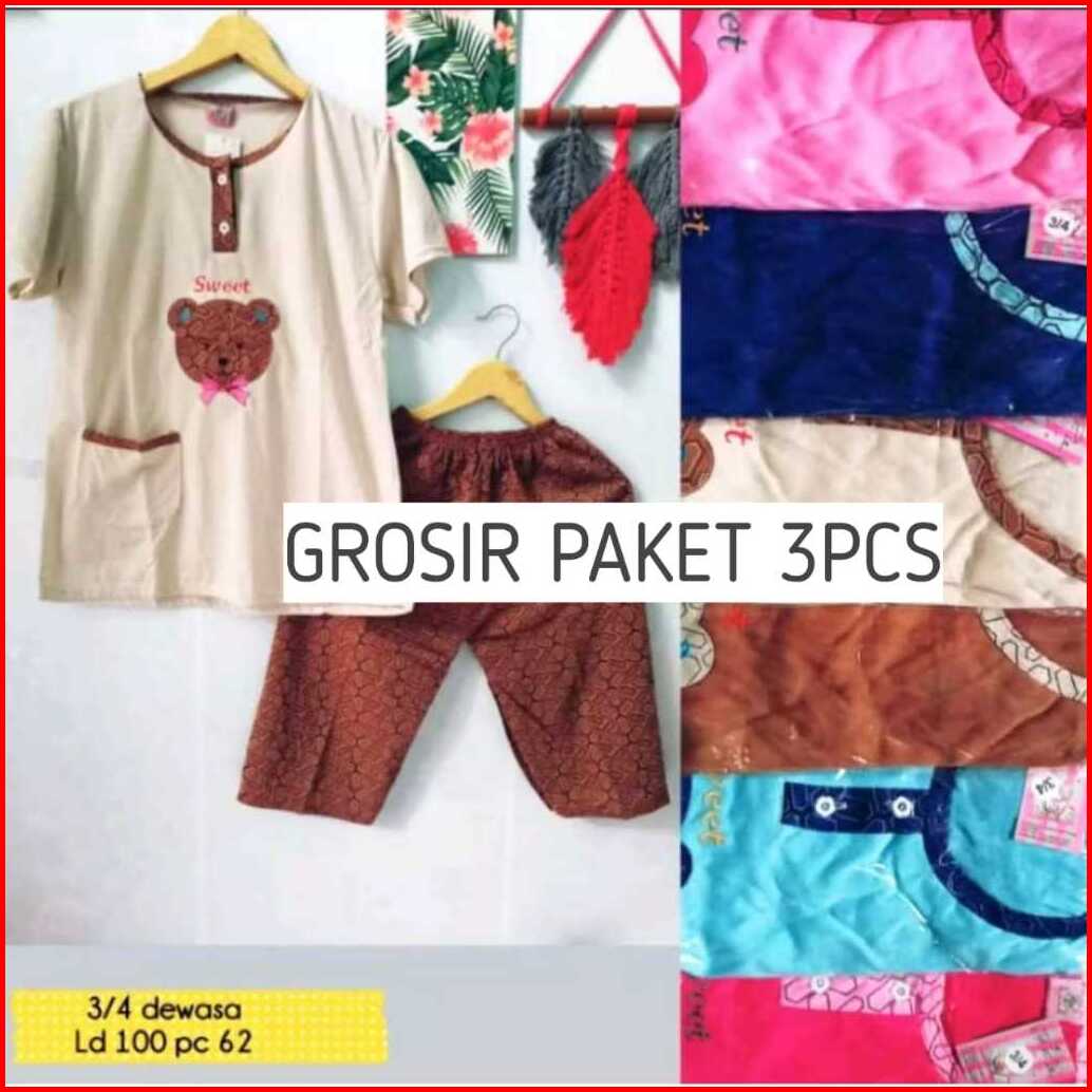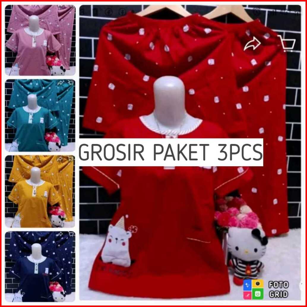 Grosir Paket Hemat 3pcs Setelan Baju Tidur Standar Ld 110cm Setelan 3 4 Cp Pp Daster 3in1