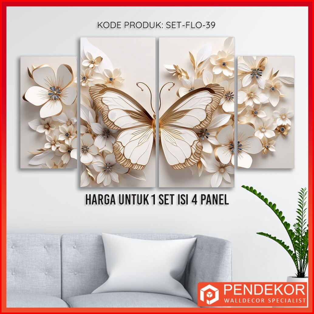 Hiasan Dinding 1 Set Bunga 3d Elegan 4 Panel Wall Decor White Flower Pajangan Kamar Aesthetic Dekorasi Ruang Tamu Set-fl