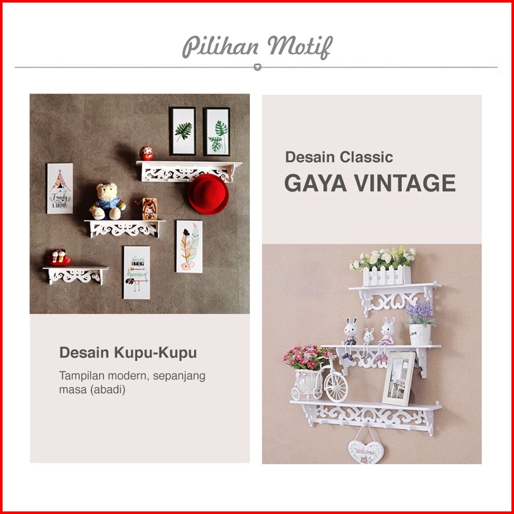 Rak Dinding Vintage 1set Isi 3pcs New Ada 5 Hook Gantungan