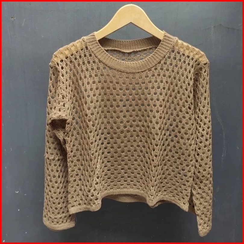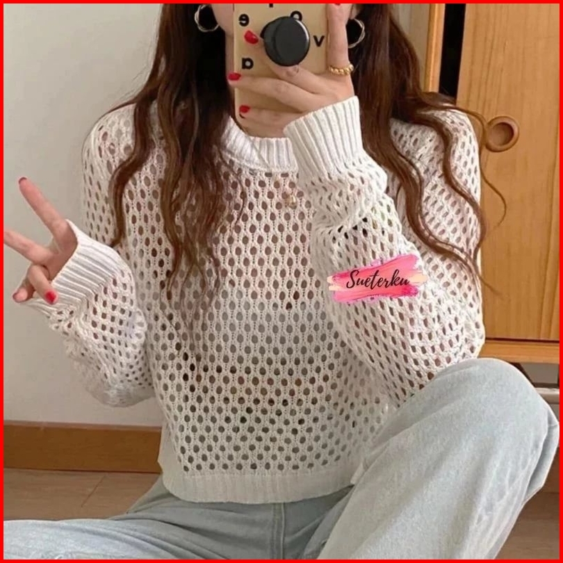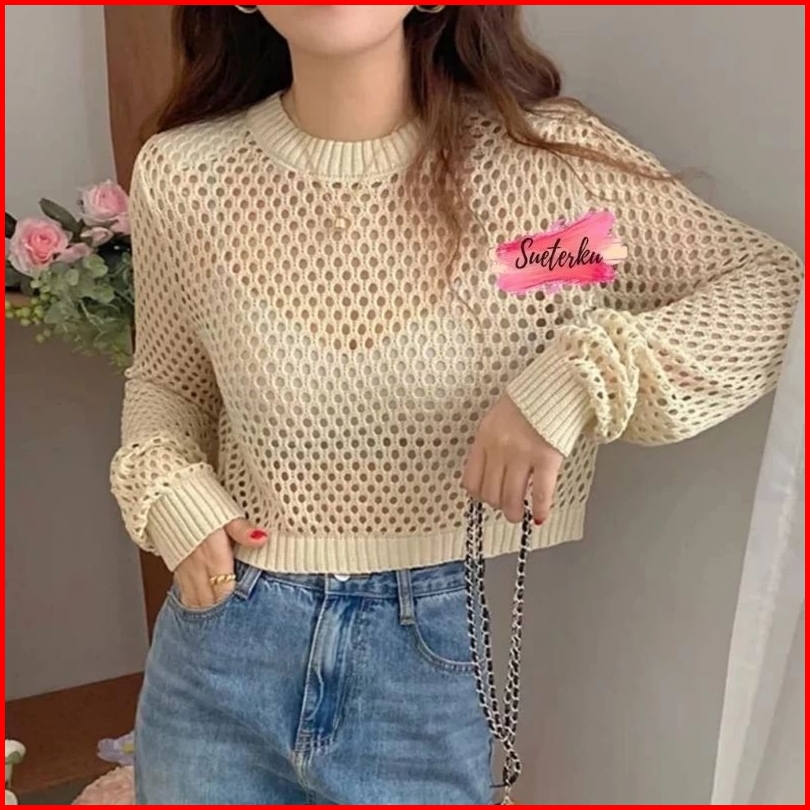 Crop Top Jaring Oversize Tangan Balon Wanita Atasan Jaring Terbaru