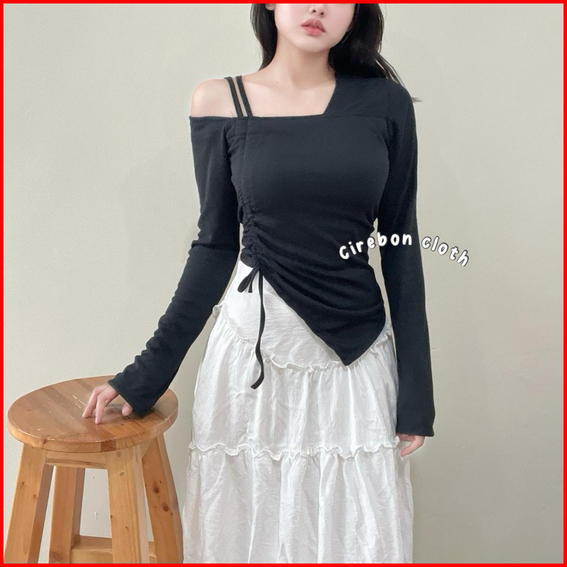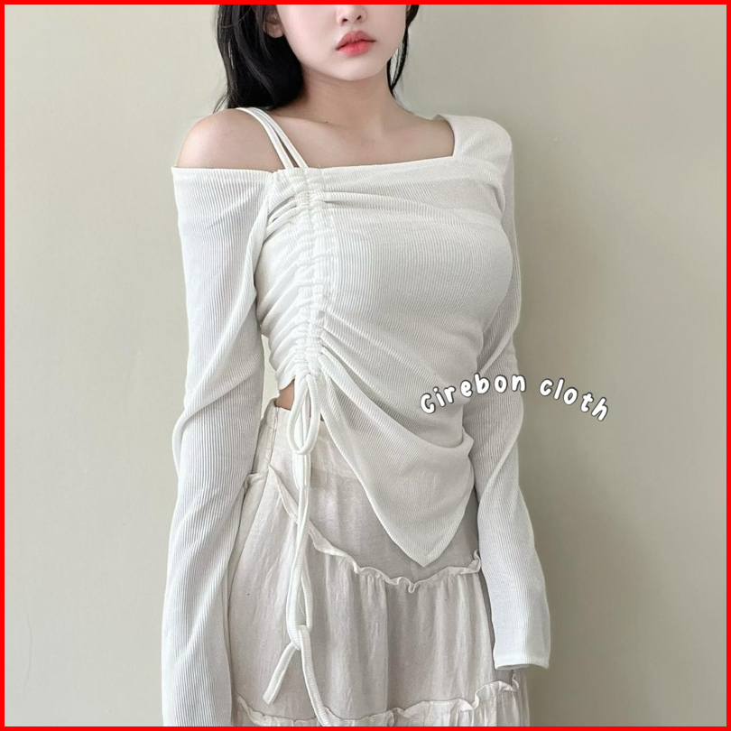 Cirebon Cloth - Clarissa Top Knit Sabrina Knit Top Atasan Wanita Lengan Panjang Pita Coquette Korean Top Long Sleeve