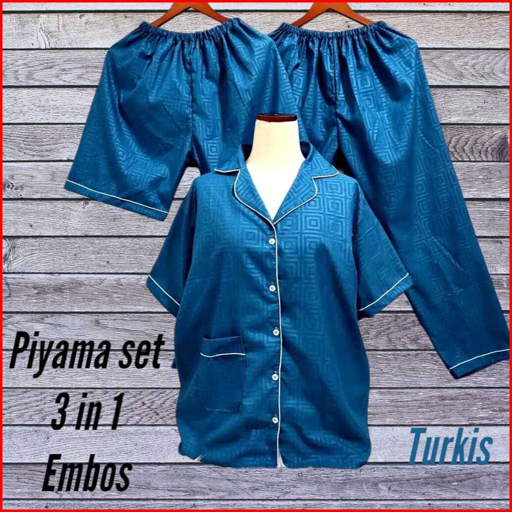 Setelan Piyama 3 In 1 Baju Tidur Wanita Lengan Pendek Embos Motif Premium Ld 115cm Ukuran M L Xl Xxl