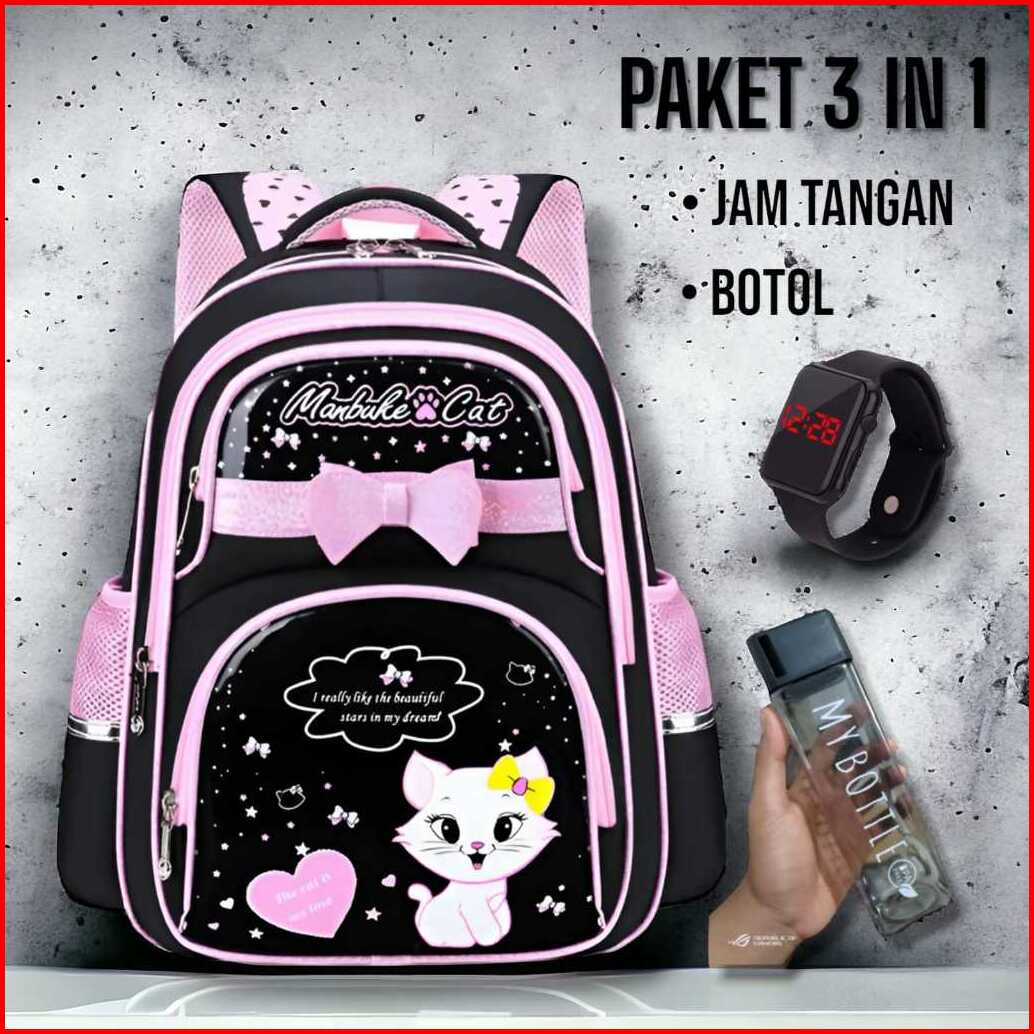 Tas Ransel Anak Sekolah Perempuan Tk Sd Motif Manbuke Cat