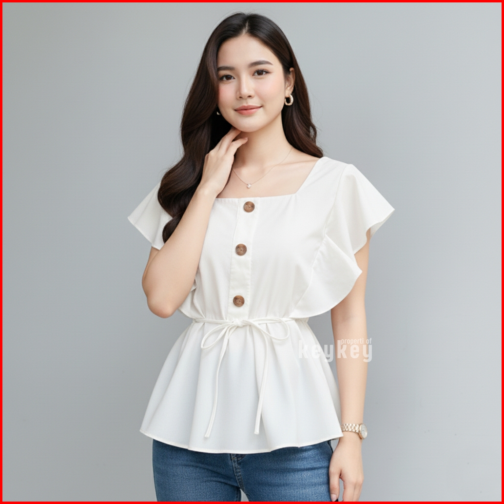 Joena Blouse Wanita Wolfis Ruffle Square Neck Simple Chic Kekinian Atasan Blouse Wanita Elegan