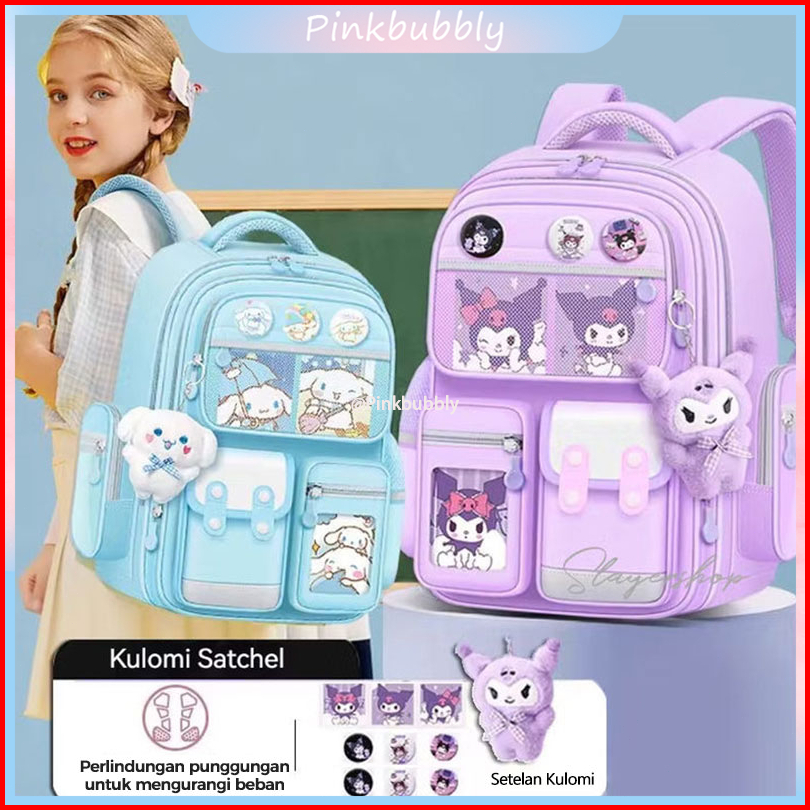 Pinkbubbly. Ready Besar Tas Ransel Kuromi Cinnamorol Melody Tas Sekolah Anak Impor Tas Sekolah Anak Tas Tahan Air Ransel