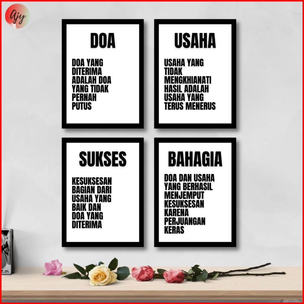 Ajy Paket 4 Pcs Hiasan Dinding Wall Decor Poster Kata Kata Motivasi