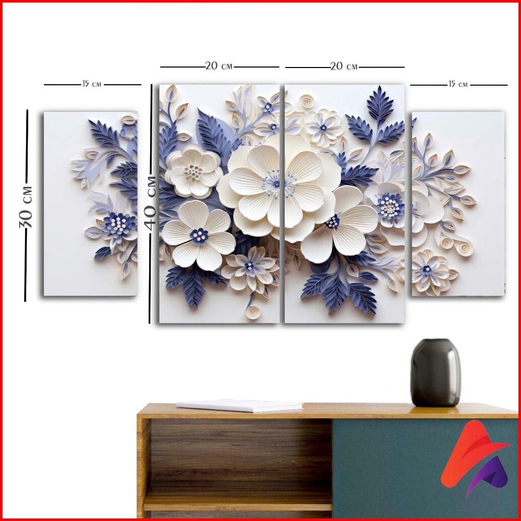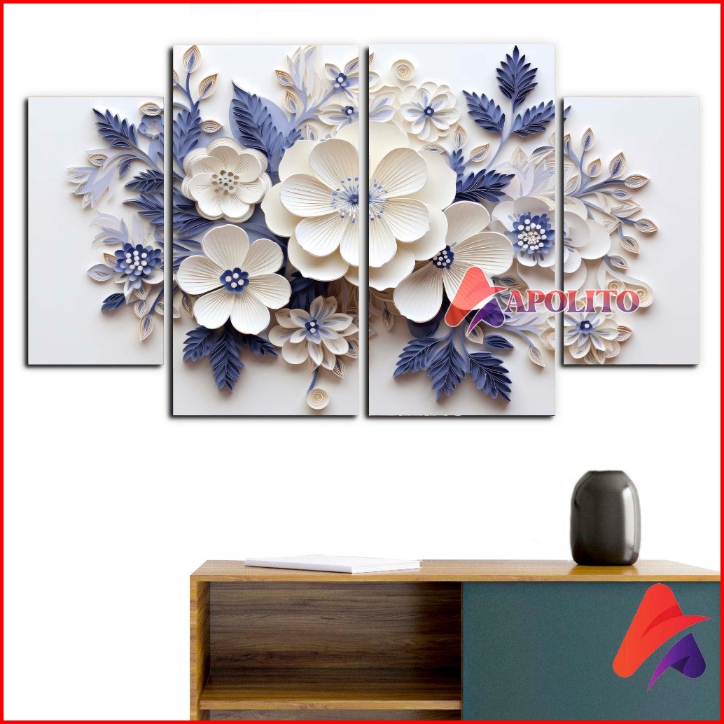 Hiasan Dinding Pemandangan Aestetik Blue Folwers Set Isi 4 Dekorasi Rumah Pemandangan Bunga Cantik