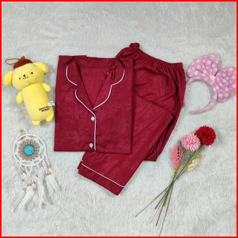 Piyama Polos Embos Cp Celana Panjang Lengan Pendek Standar Jumbo Setelan Baju Tidur Katun Adem Halus Premium Murah Menye