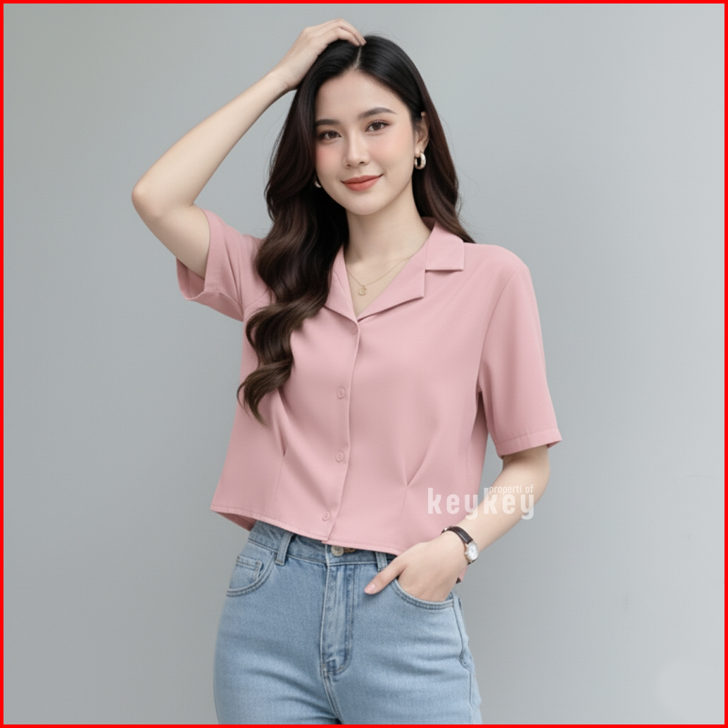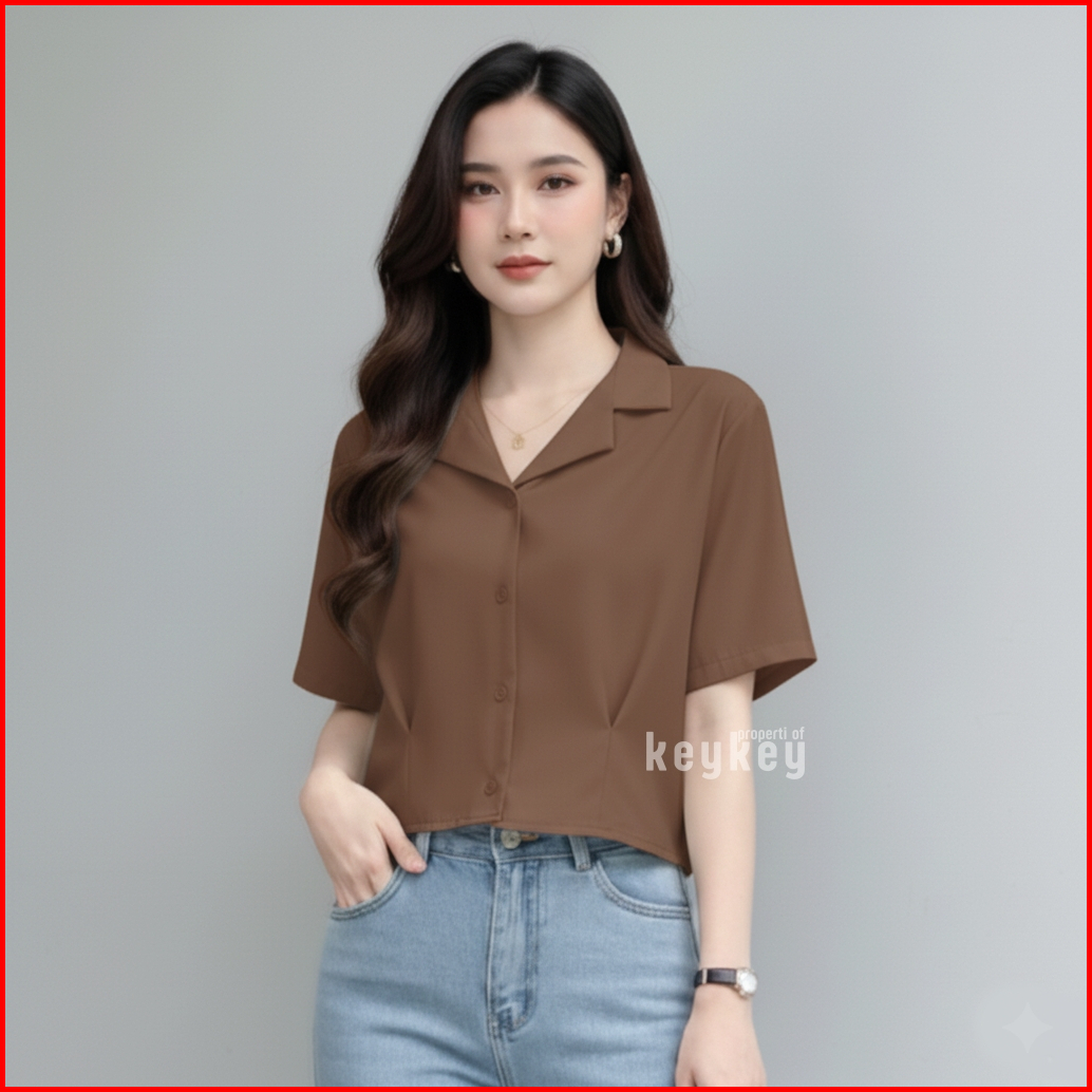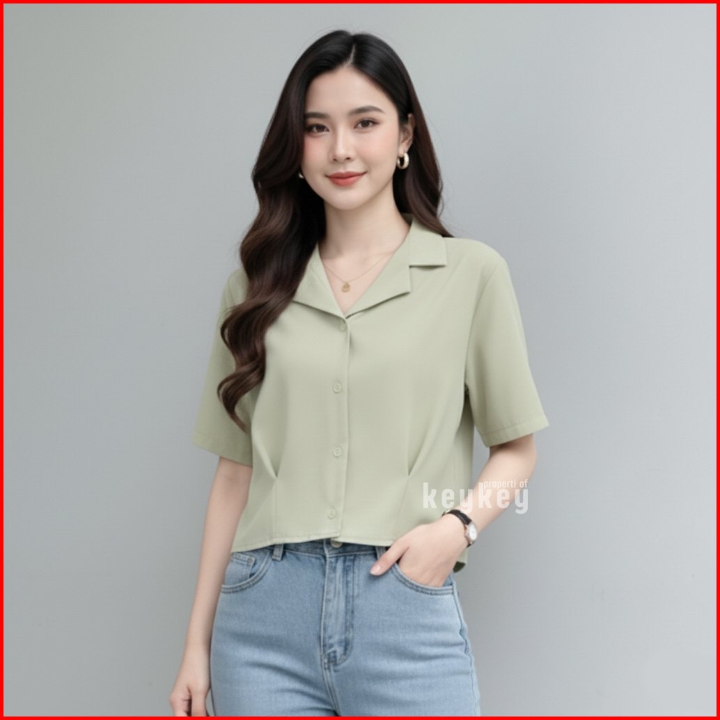 Easter Kemeja Wanita Crop Top Lengan Pendek Wolfis Premium Atasan Kemeja Crop Top Kekinian
